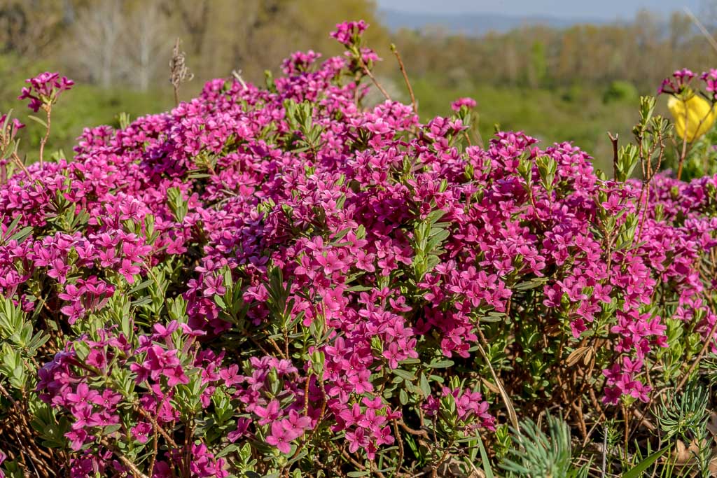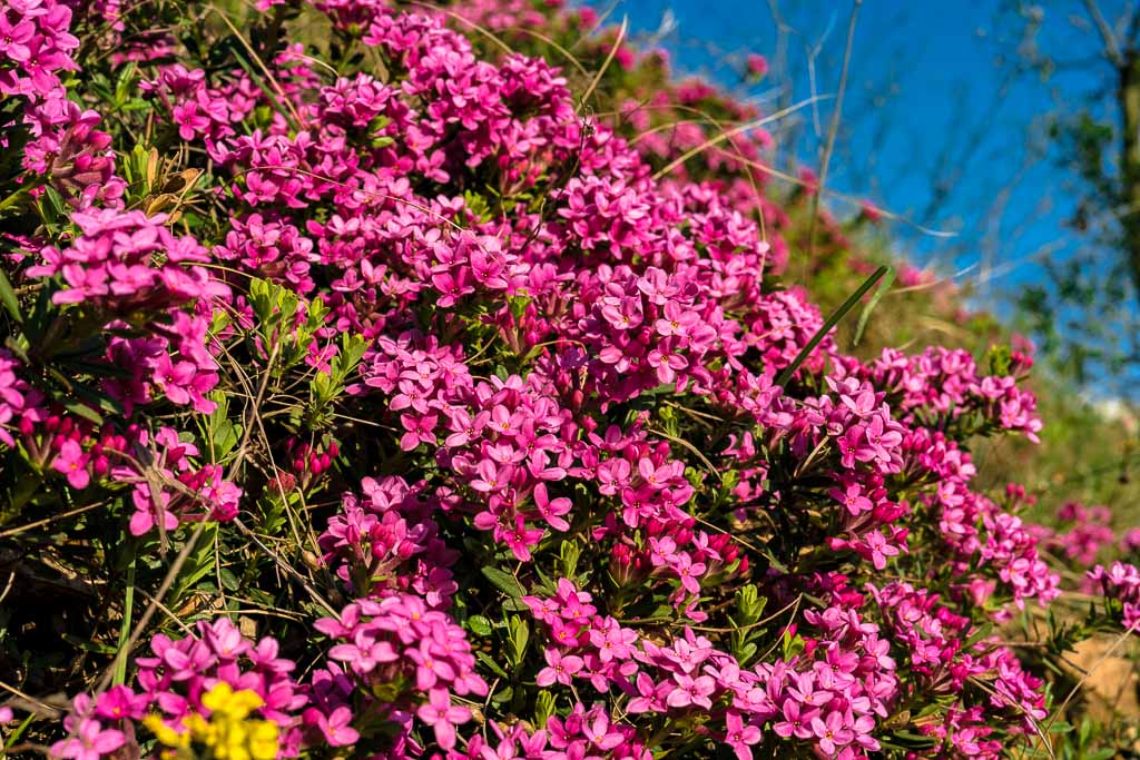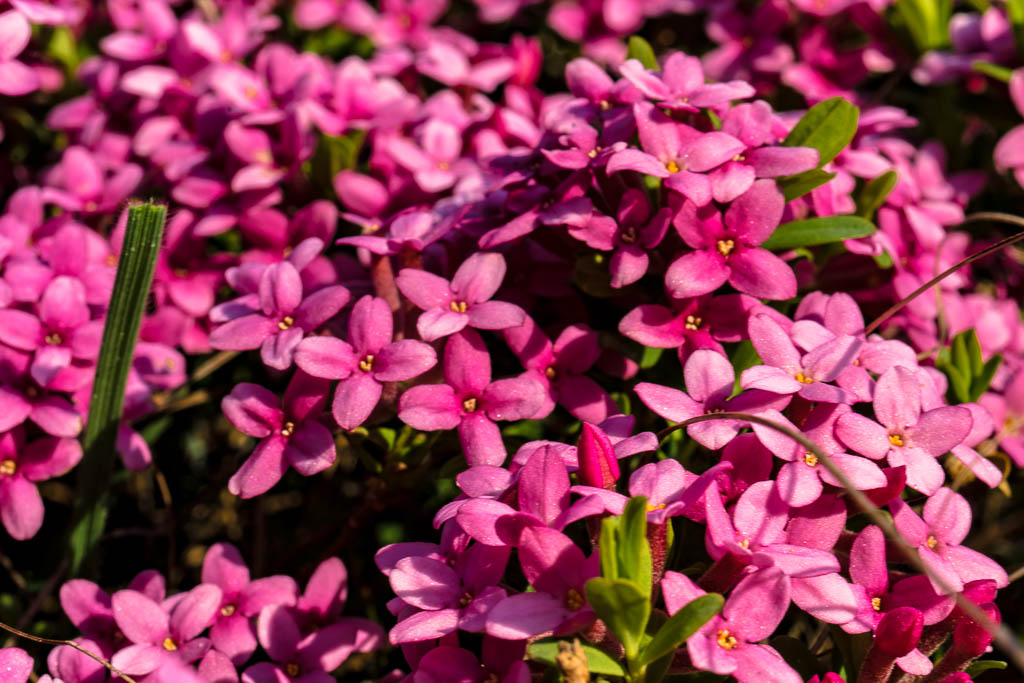 Unmengen von Steinröschen (Rosmarin Seidelbast, Daphne cneorum)