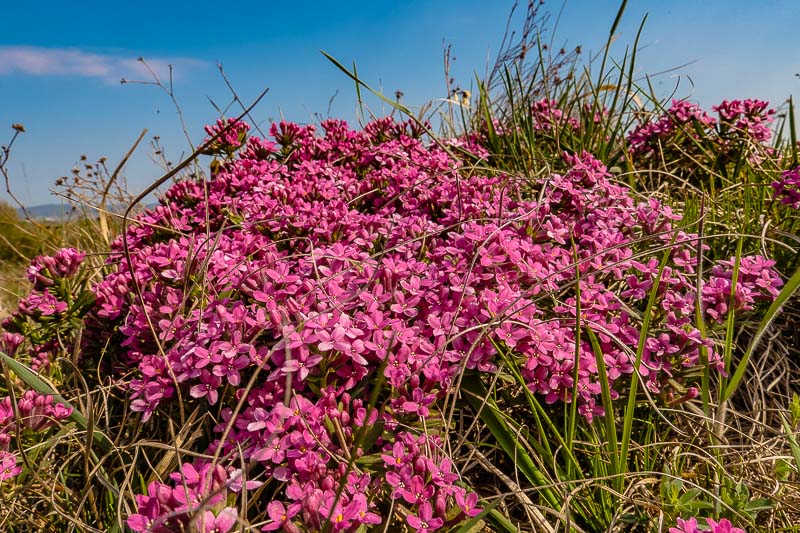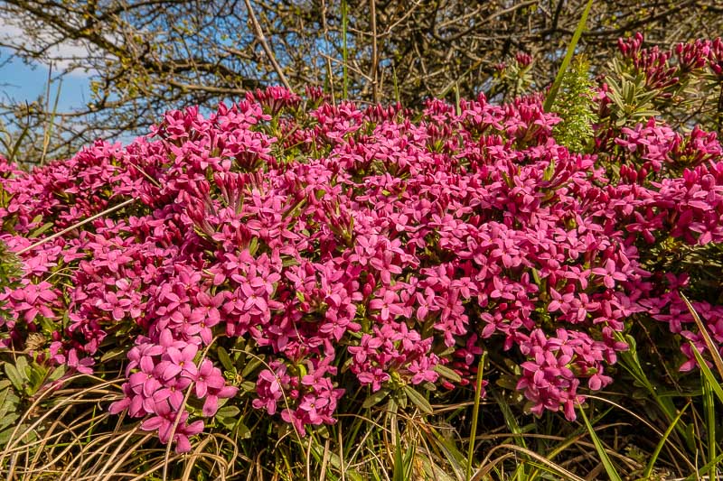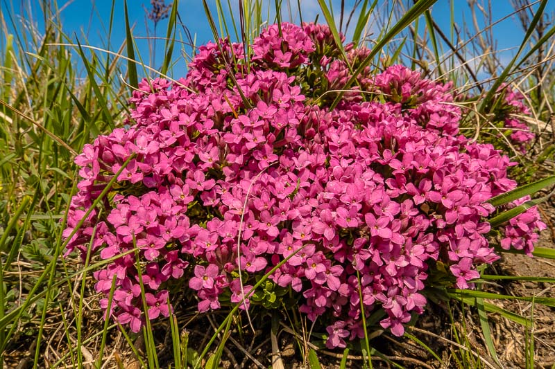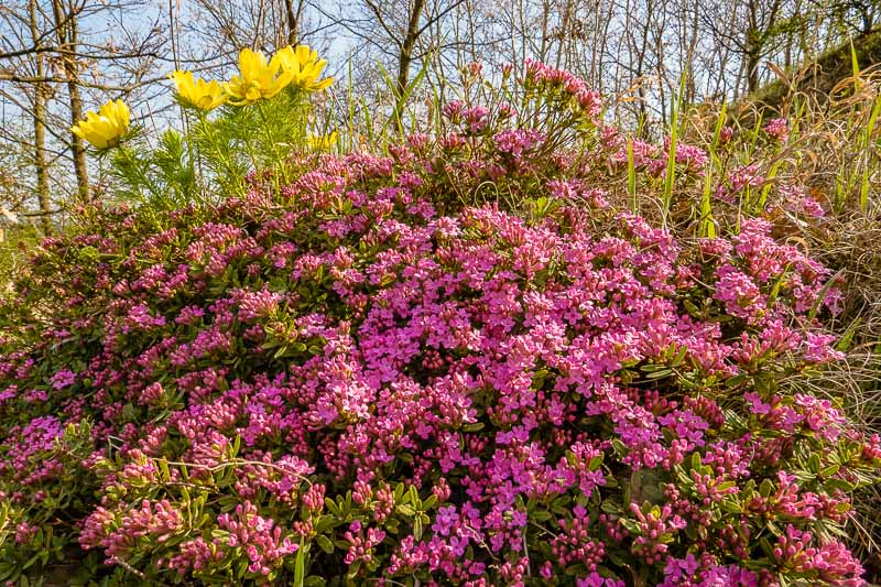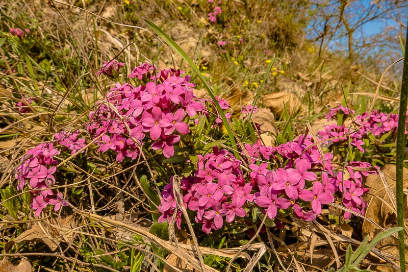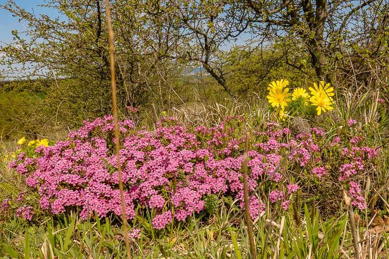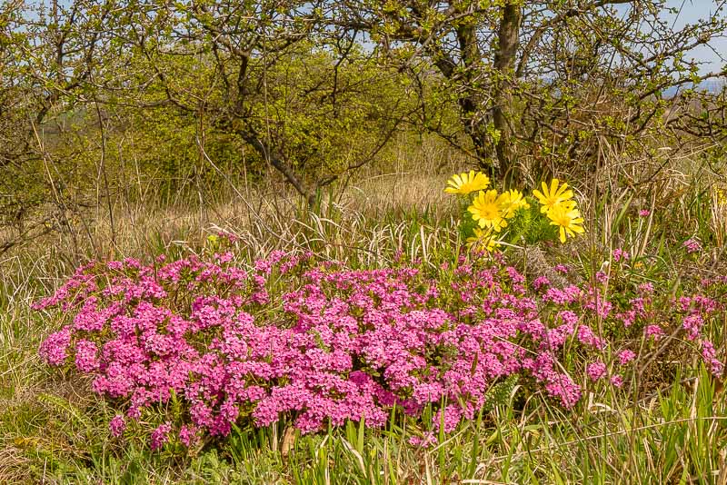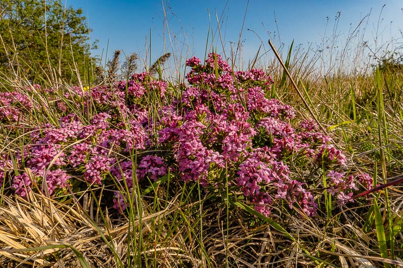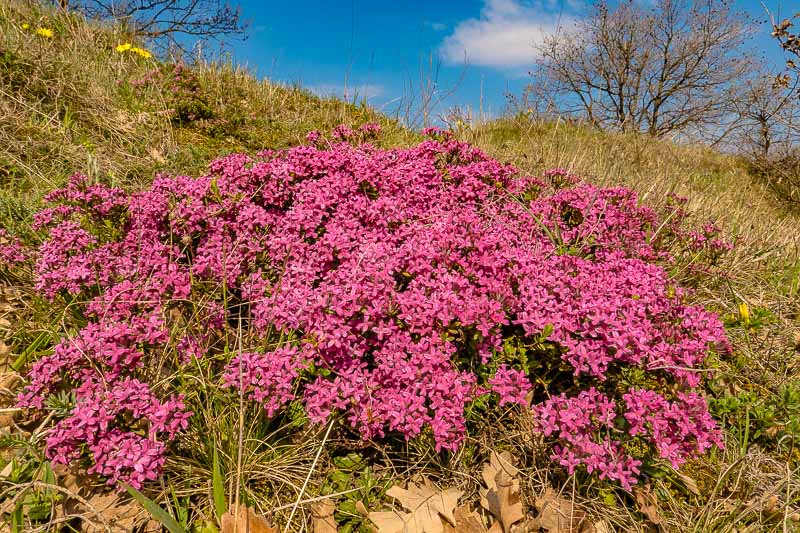 Die eigentliche Attraktion dieses Gebietes ist aber auch - unter anderem - das sehr üppige Vorkommen der Rosmarin-Seidelbasts (Steinröschen, Daphne cneorum)