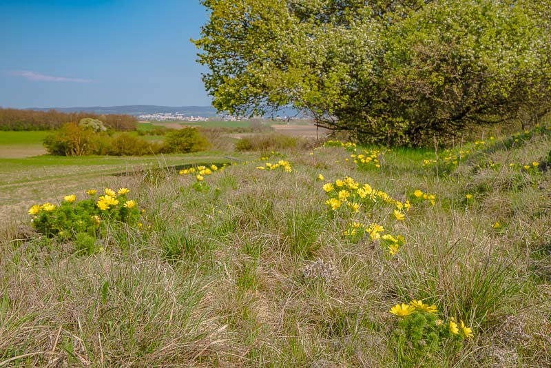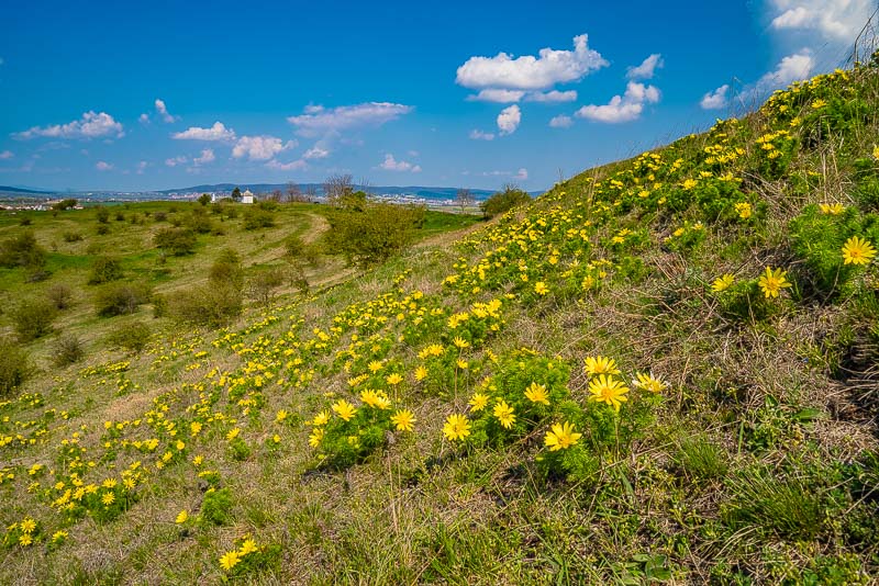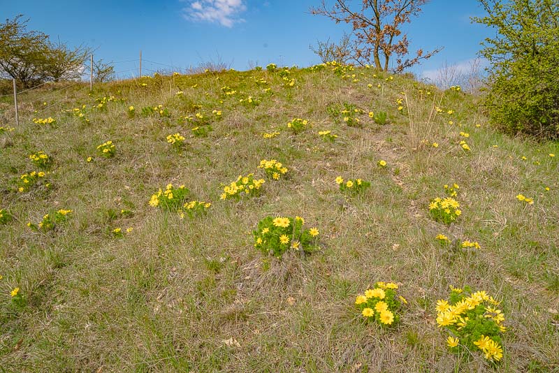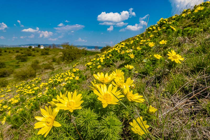 Der ganze Hang hinter der Rochus - Kapelle ist voll mit Frühlings - Adonisröschen (Adonis vernalis)