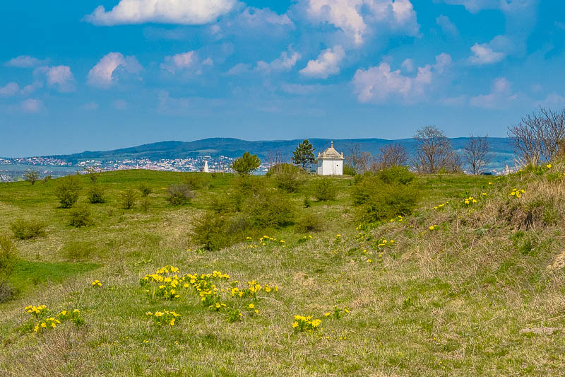 Ich fahre Richtung der am Ortsrand von Siegendorf auf einem Hügel gelegenen Rochuskapelle. Zwischendurch grüßt der Schneeberg herüber.