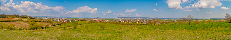 Panoramablick vom Hügel bei der Rochuskapelle oberhalb von Siegendorf. Hierher oder ins Bild klicken für eine größere Darstellung.