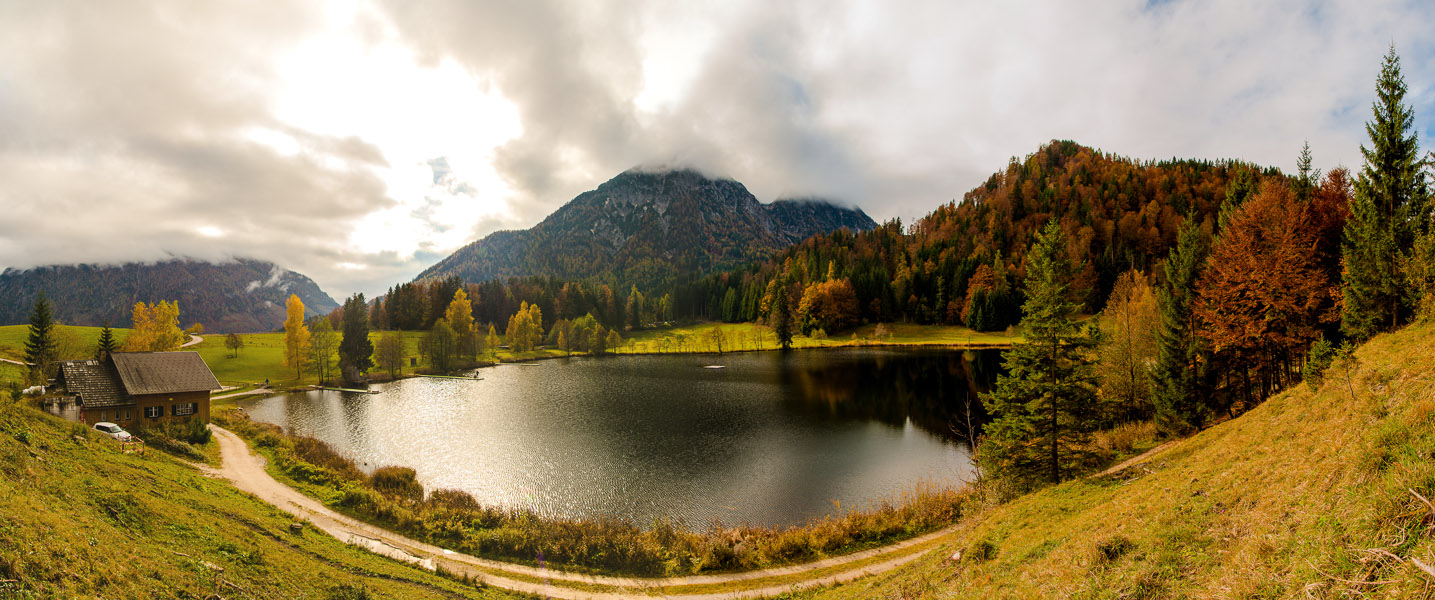 Noch einmal ein Panorama vom Sommersbergsee - diesmal mit ein bisschen Sonnenschein.