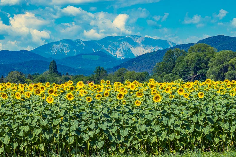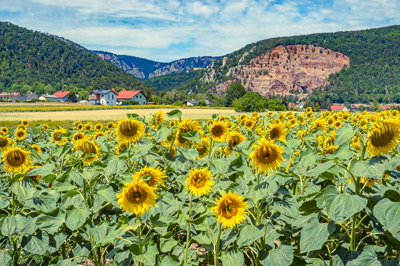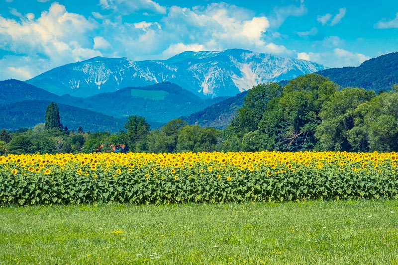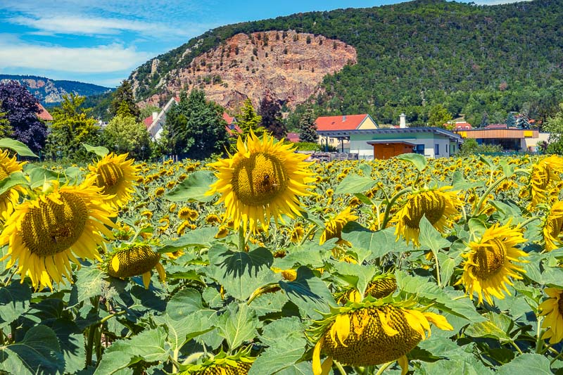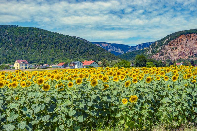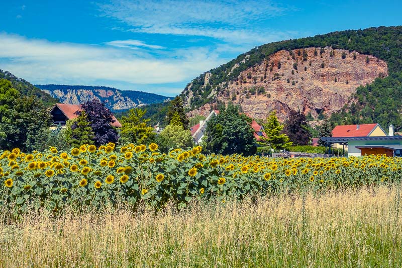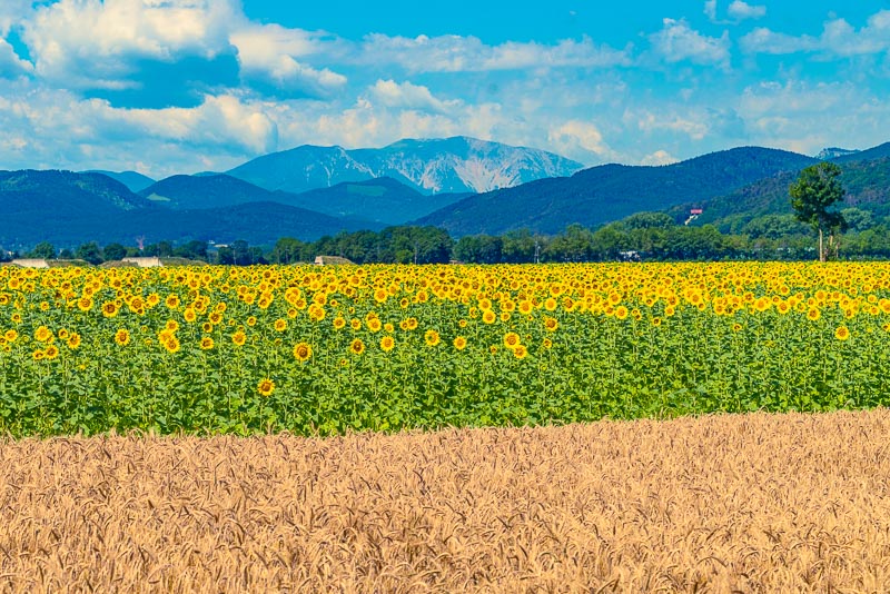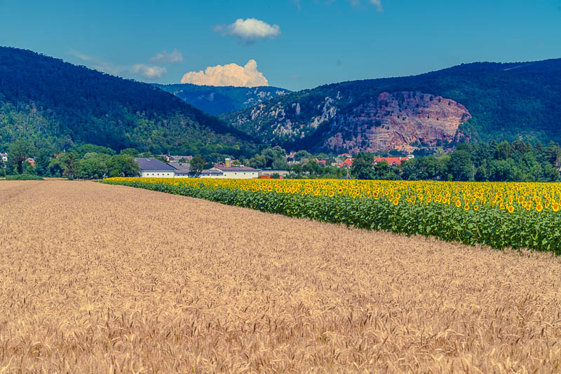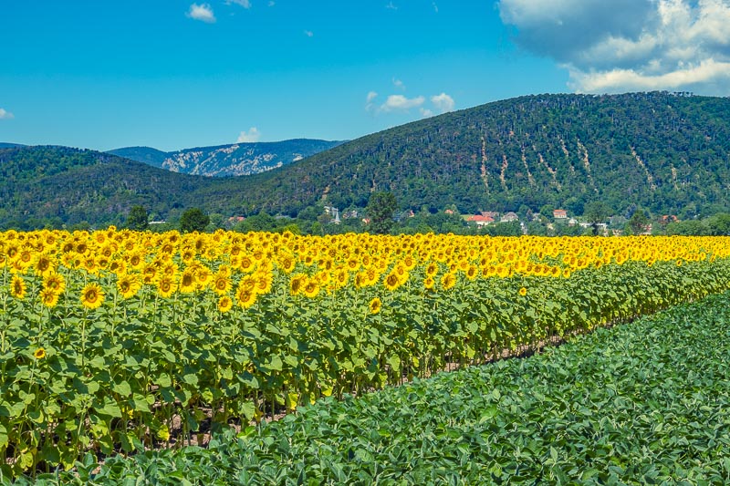 Once more also this year, there are many sunflower fields around Winzendorf; due to crop rotation, every year they are in a different place, so always new sceneries around.