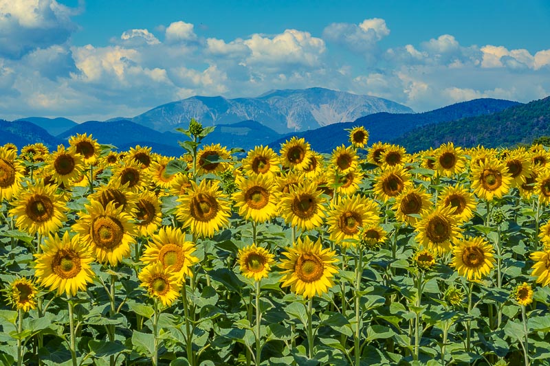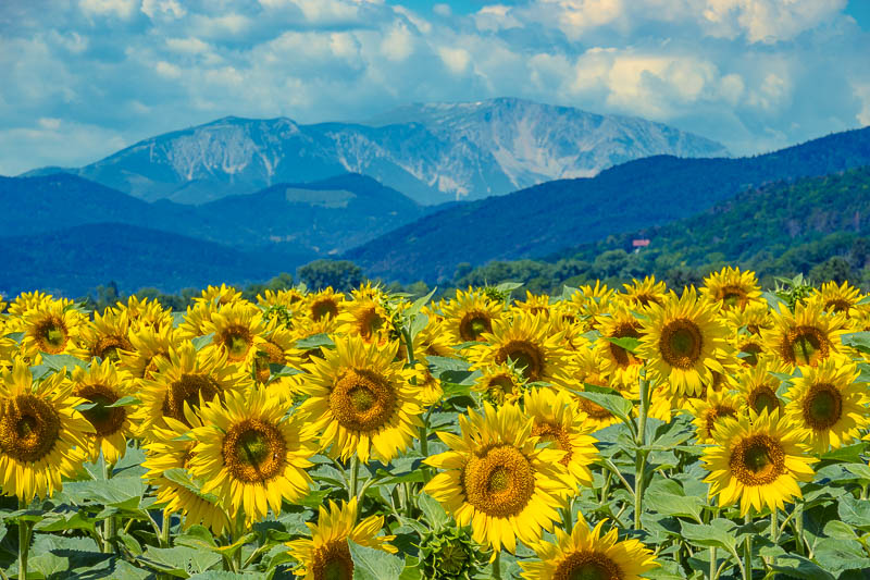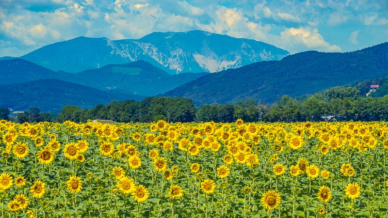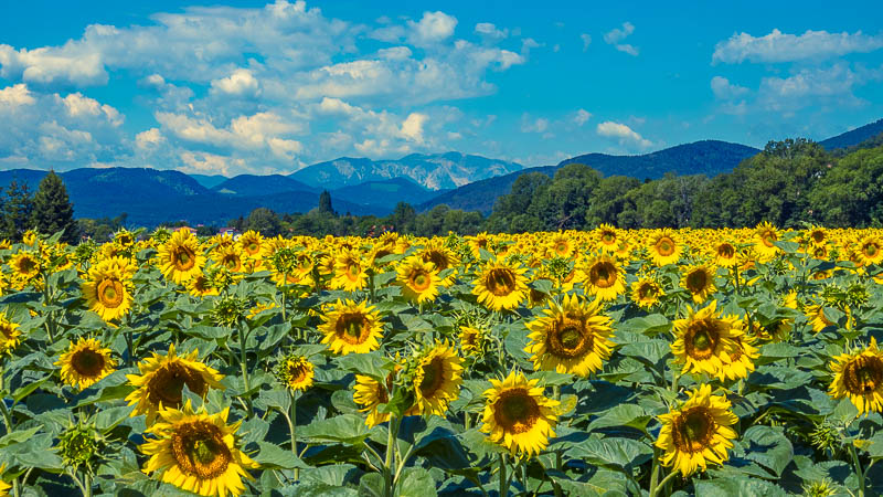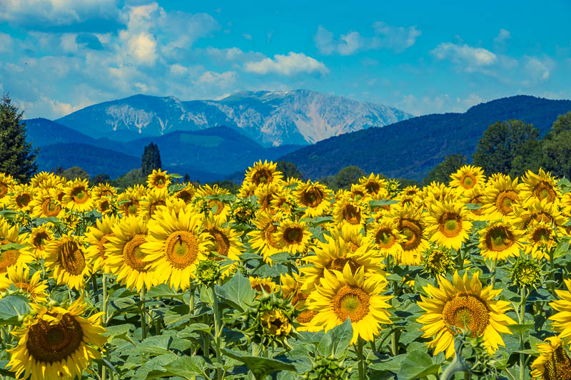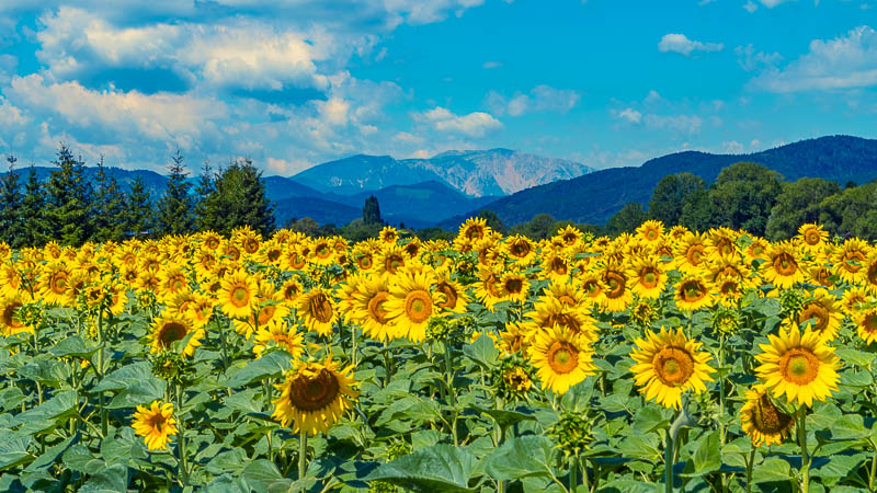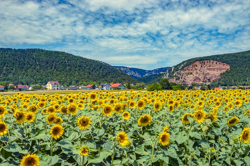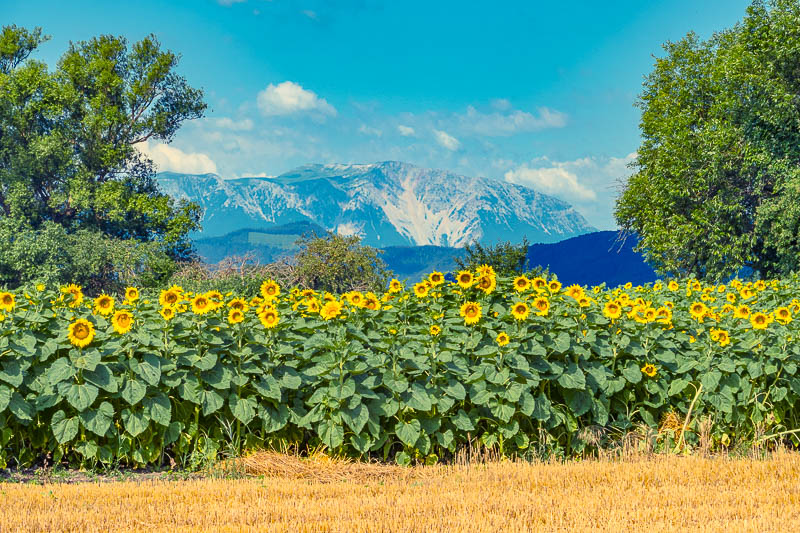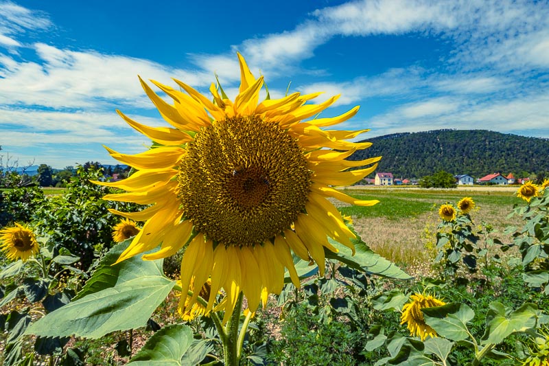 Once more also this year, there are many sunflower fields around Winzendorf; due to crop rotation, every year they are in a different place, so always new sceneries around.