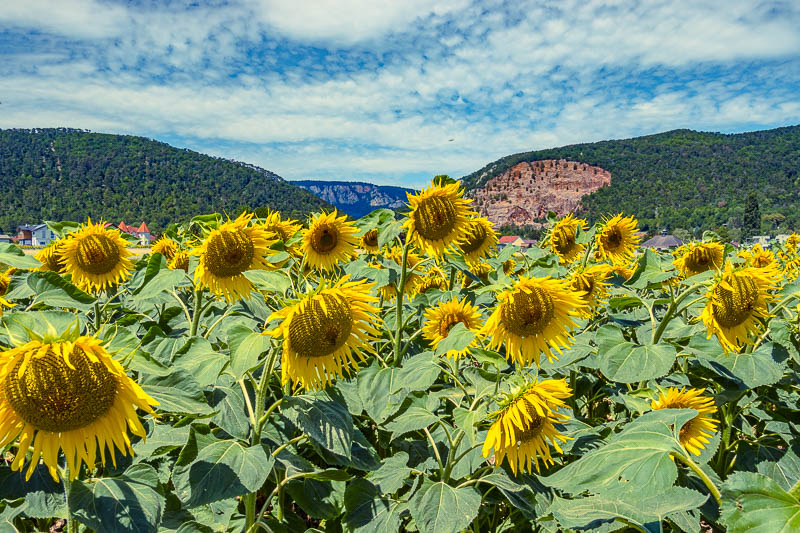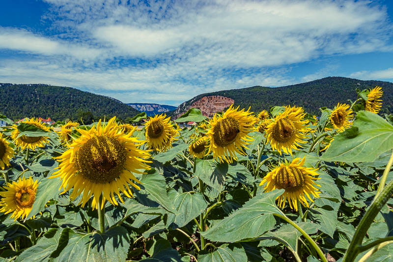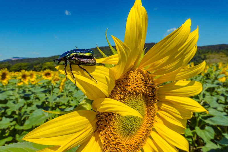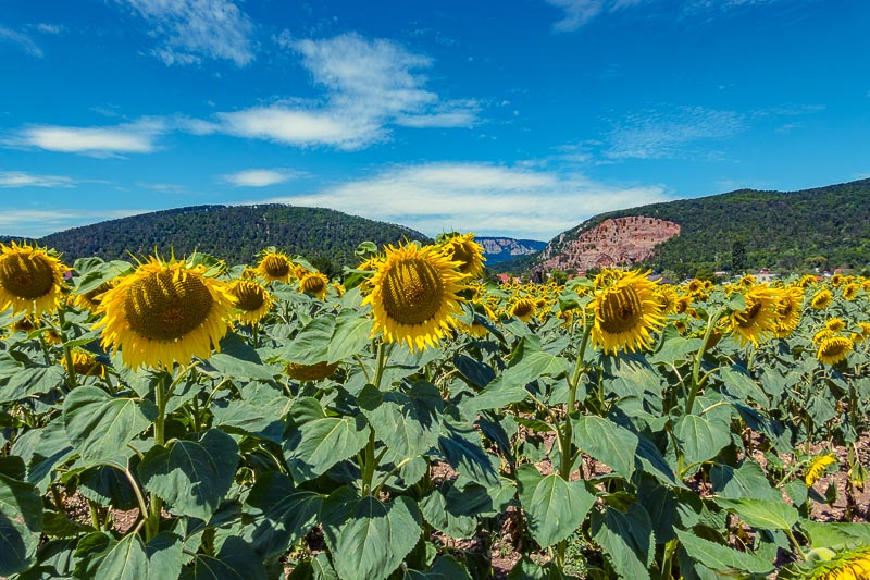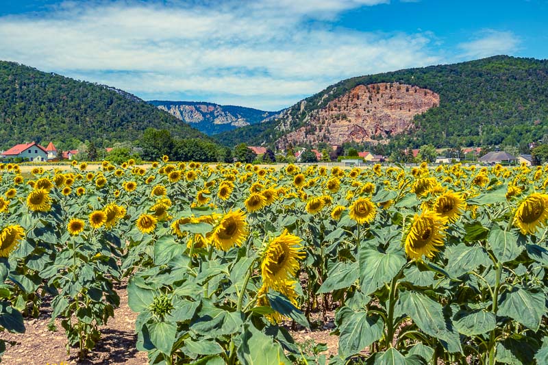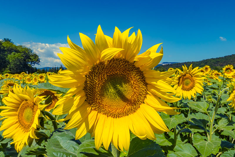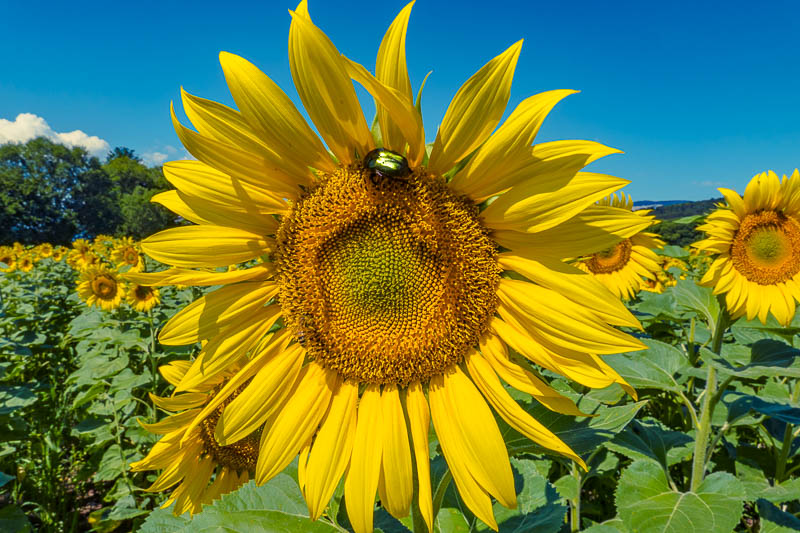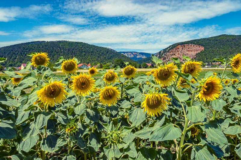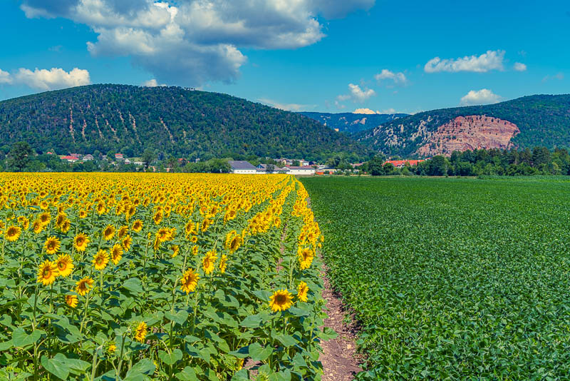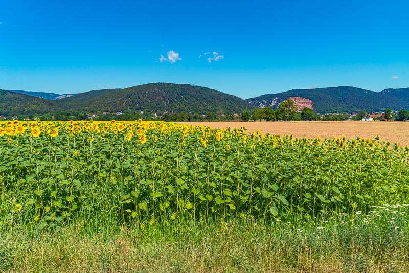 No sunflowers on the Gesanger Hill near the transponder; at the end of the small hills with the view to Schneeberg there is a large sunflower field.