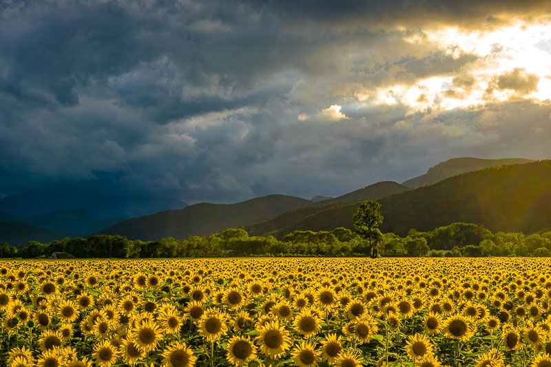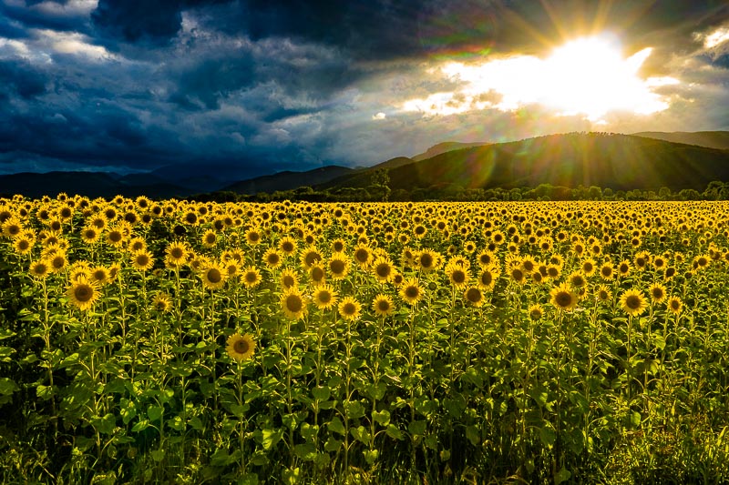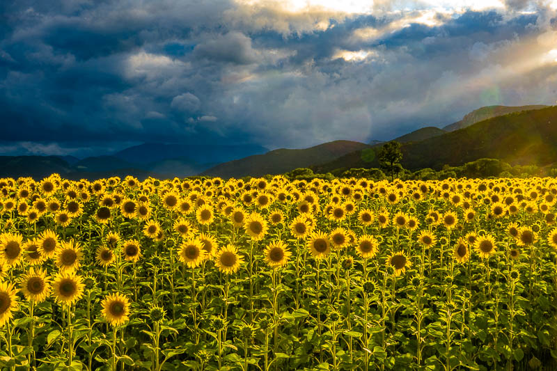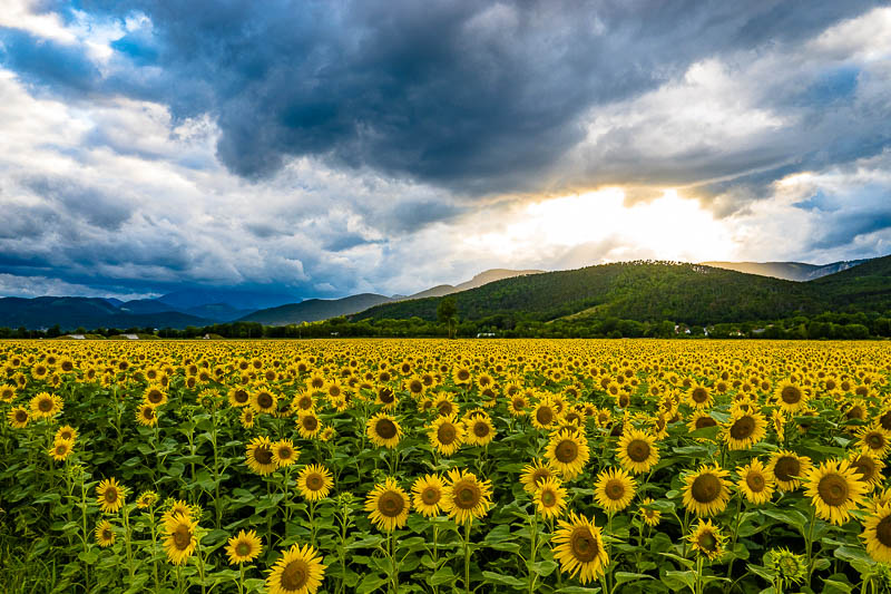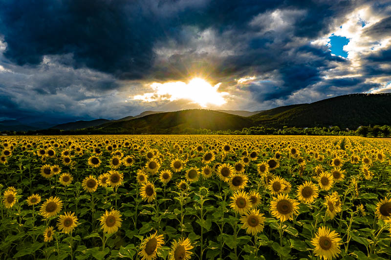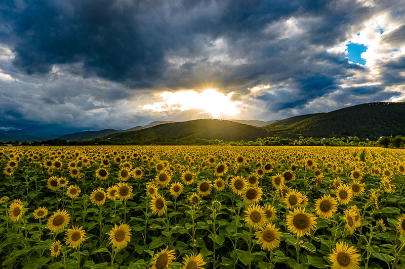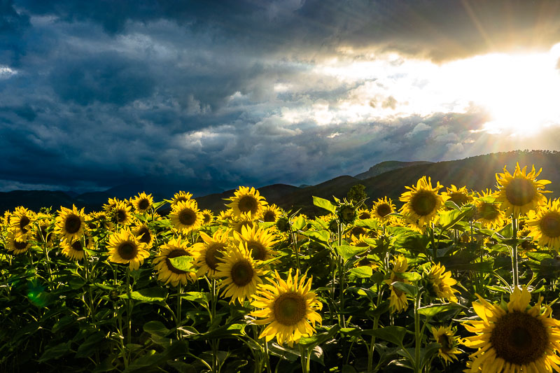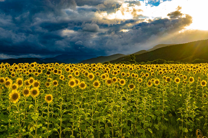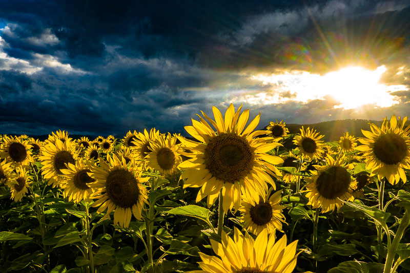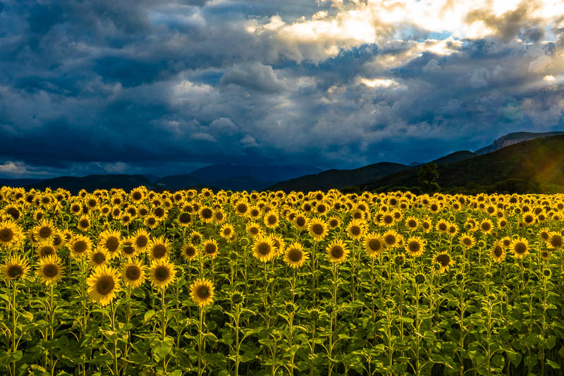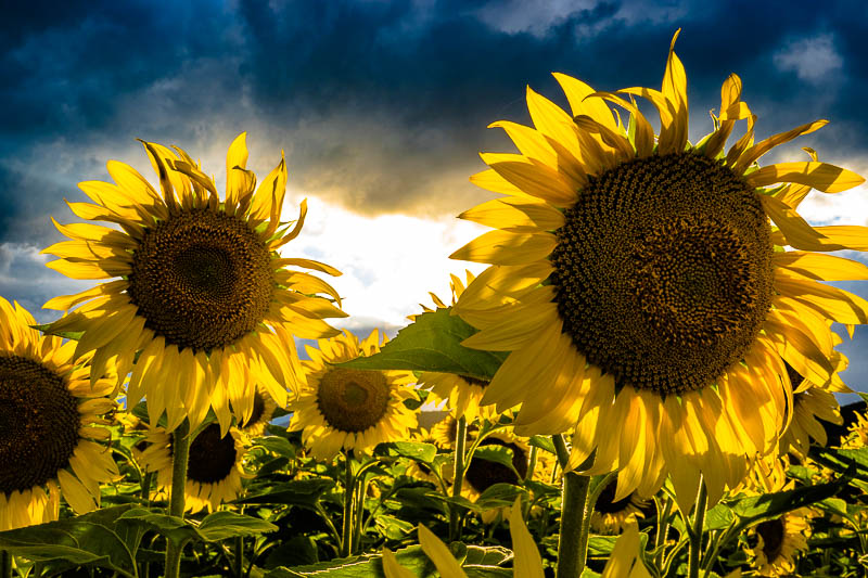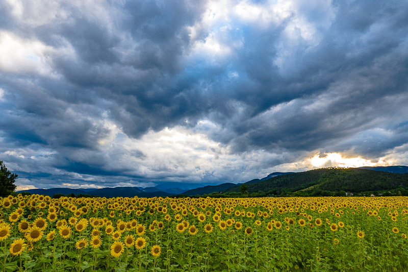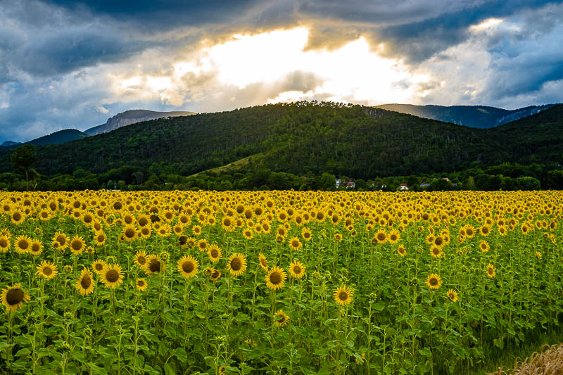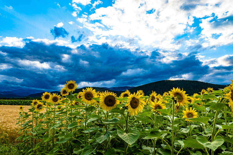 10.7.2022: coming home in the evening from Kirchberg am Wechsel. Cloudy today, but shortly before Winzendorf there is a nbeautiful cloud scenery. So I take my mountain bike and the camera and look for good views at the sunflower fields.