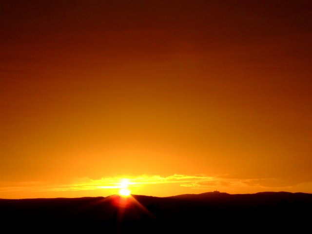 Heute morgen habe ich beschlossen, einmal früher aufzustehen, um den Sonnenaufgang zu erleben. Ich fahre zu einem kleinen Hügel nahe Saubersdorf, von dem man einen grandiosen Rundblick hat.