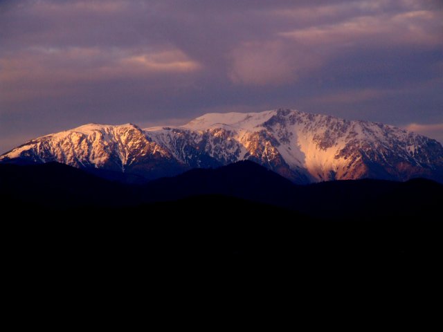 ... und nach Südwesten zum Schneeberg, auf den bereits erste Sonnenstrahlen fallen.