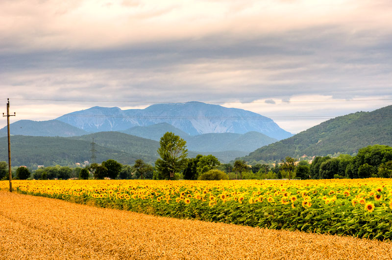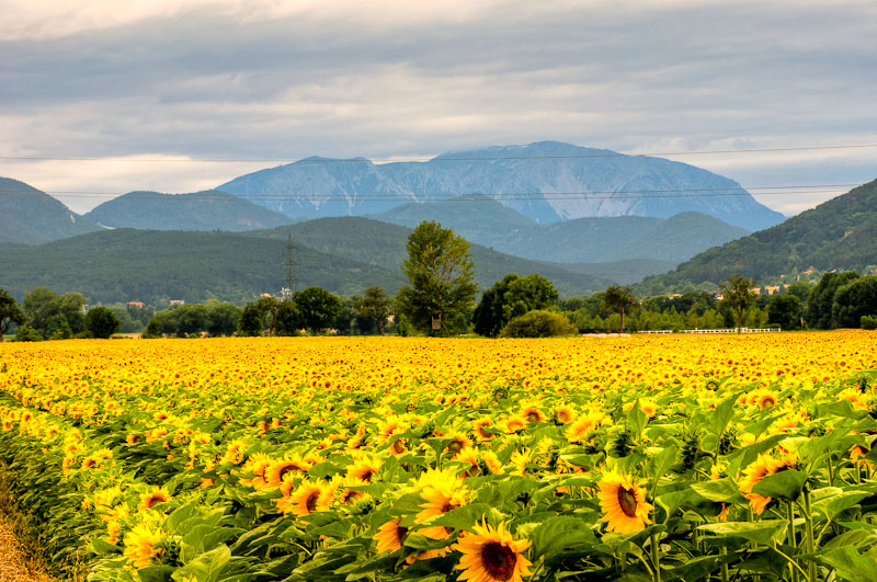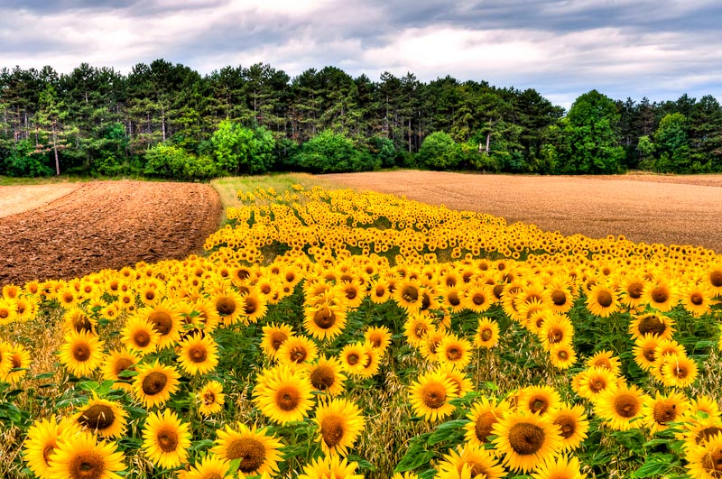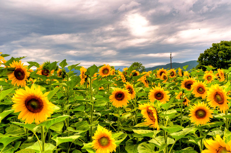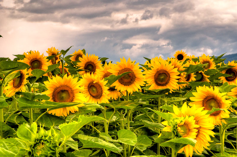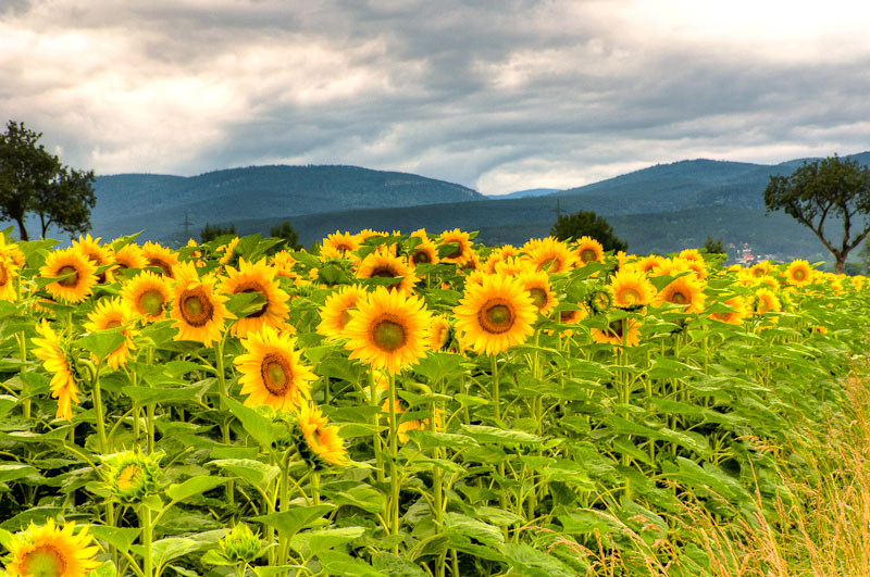 Da ich heute die Kinder zum Reitunterricht führen muss, nutze ich die Wartezeit gleich für einen kurzen Besuch von umliegenden Sonnenblumenfeldern, die jetzt in voller Blüte stehen.
