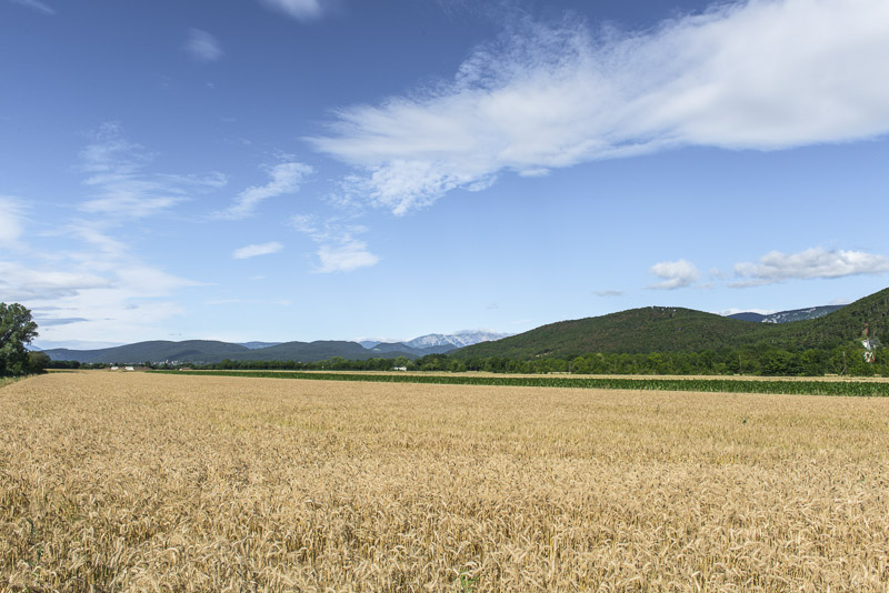 Gleich hinter Winzendorf ein reifes Weizenfeld.