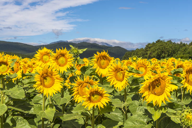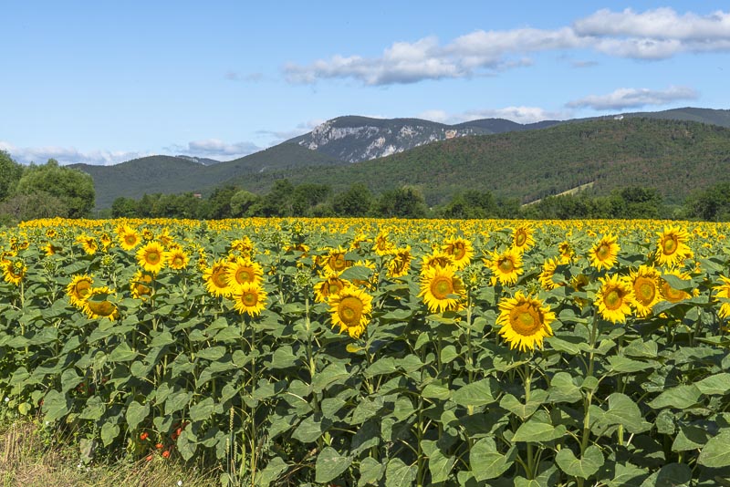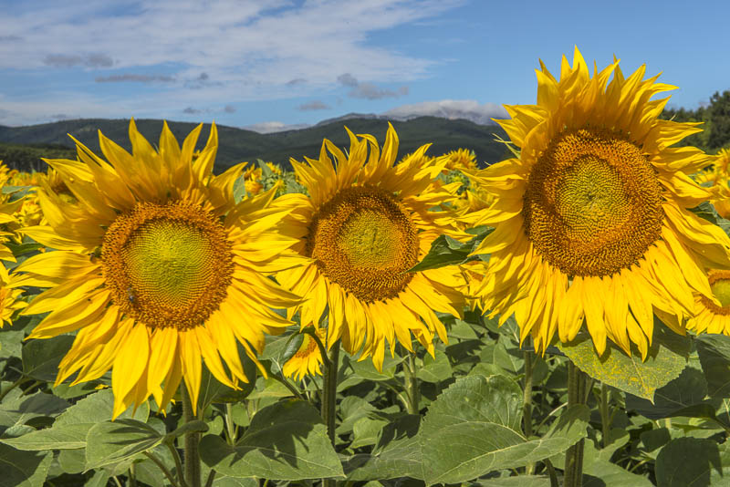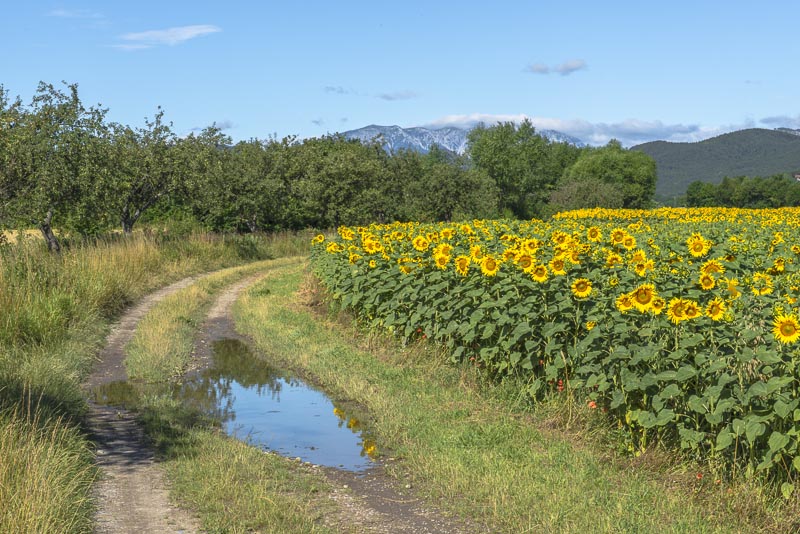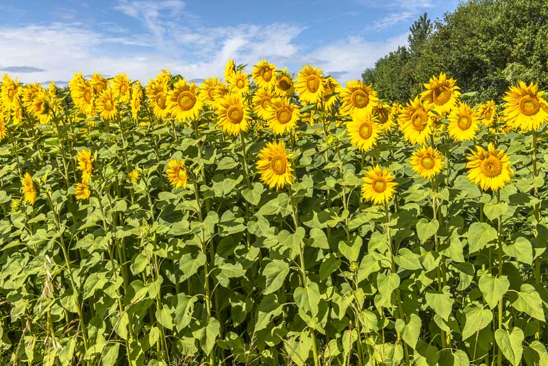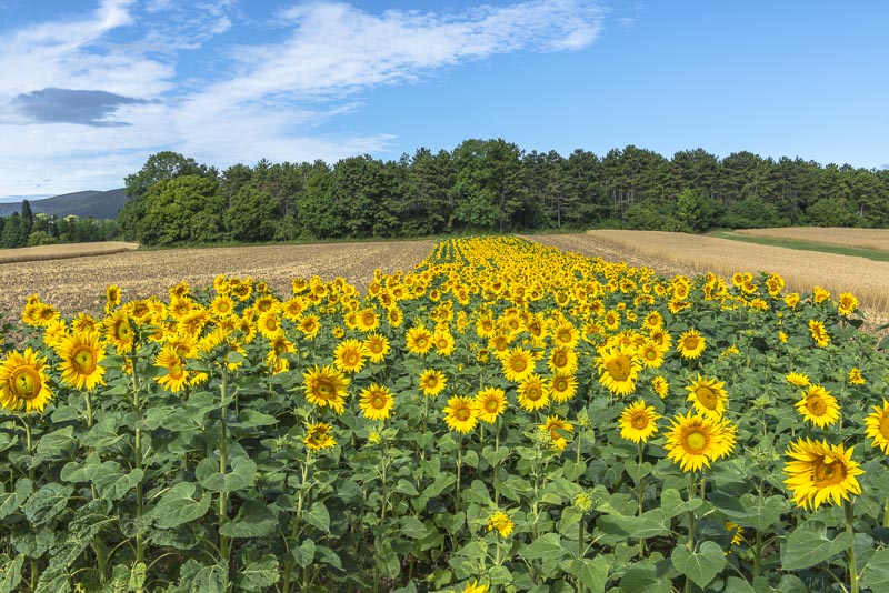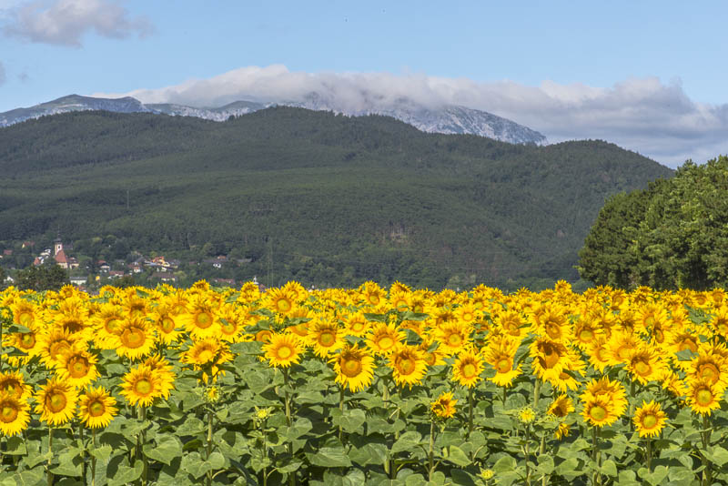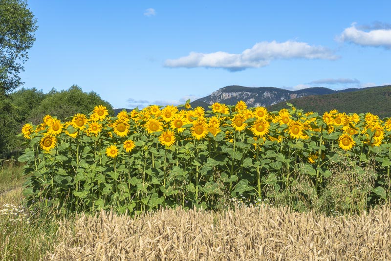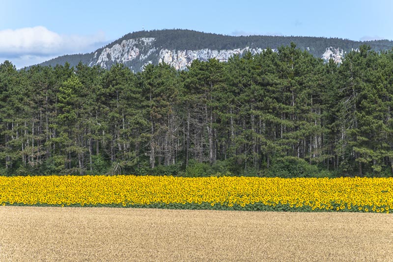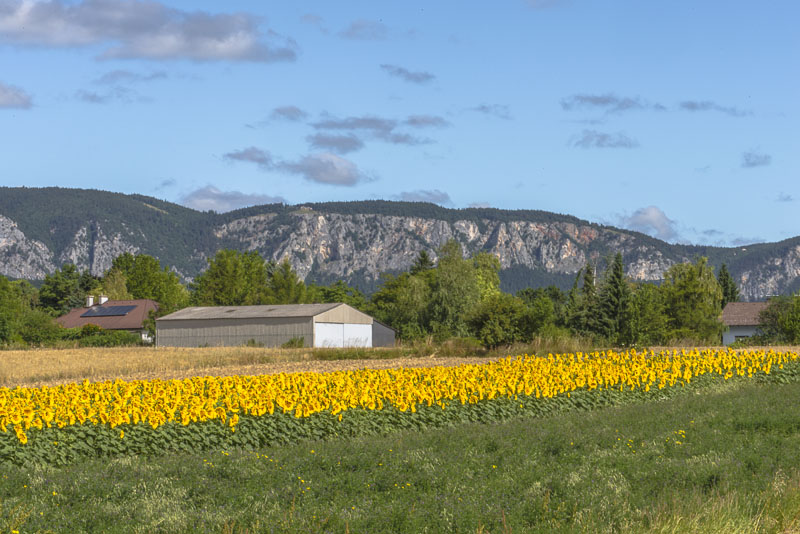 Nach Regen gestern Vormittag ist es heute wieder schön - wenn auch instabil, aber wenigstens scheint in der Früh die Sonne. Ich setze mich auf´s Mountainbike und fahre die Umgebung ab. Sonnenblumen sollten blühen.