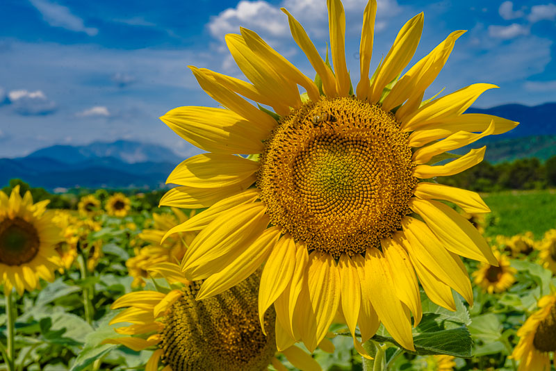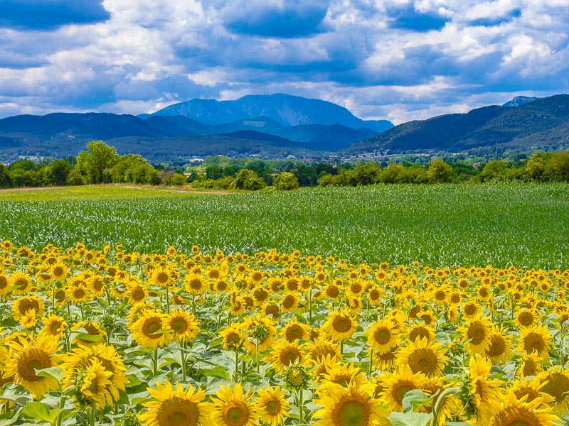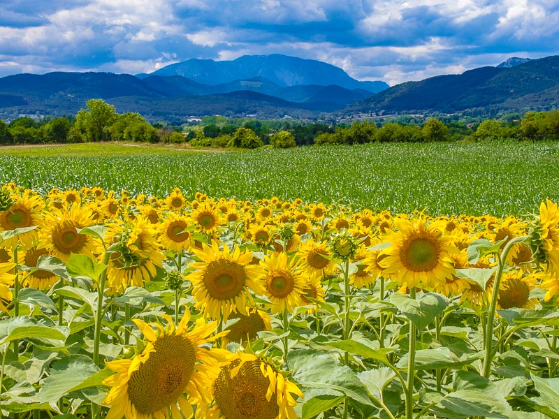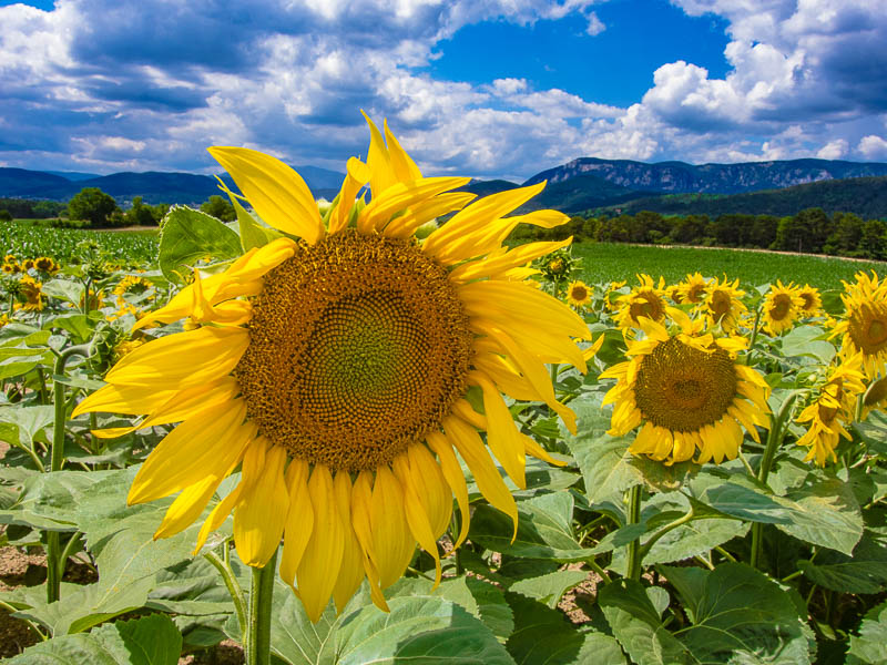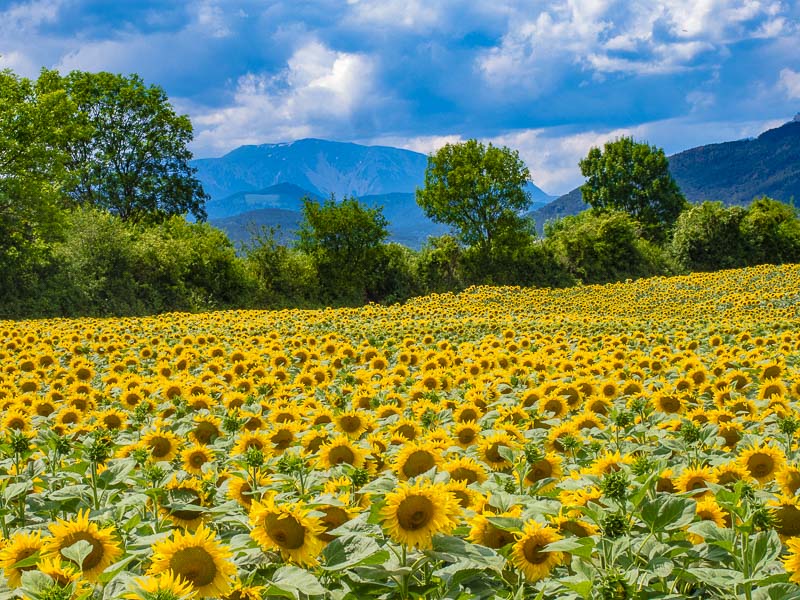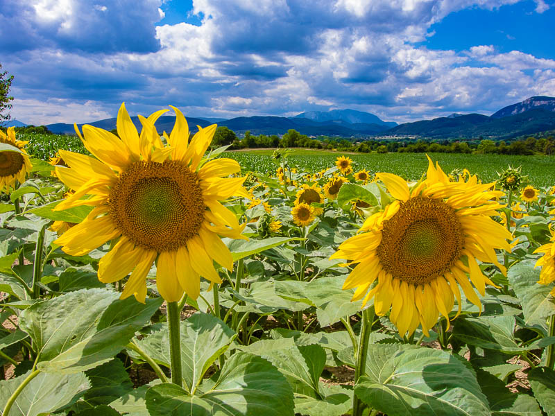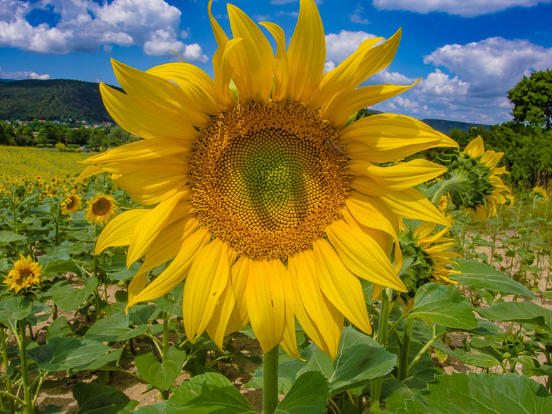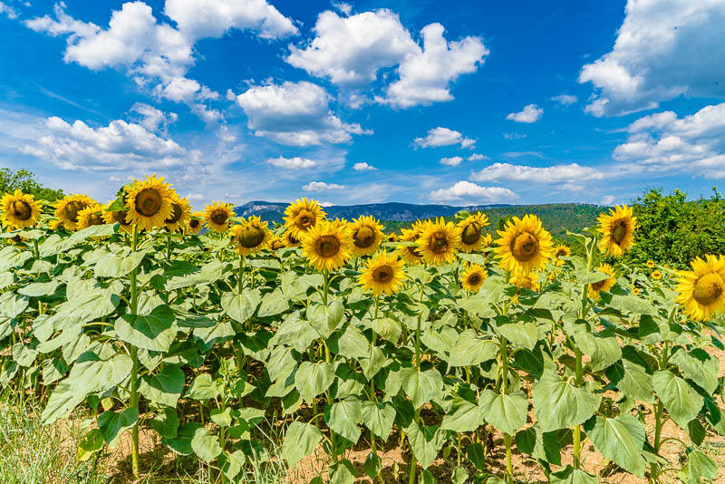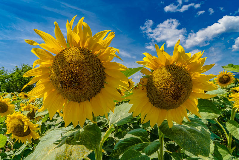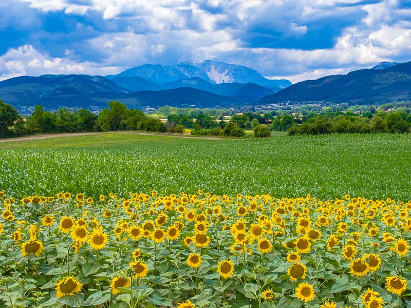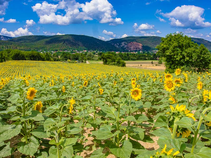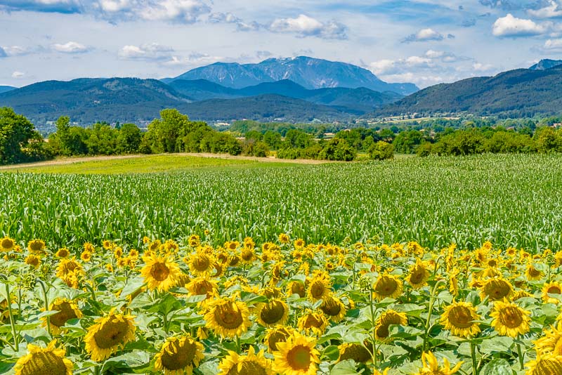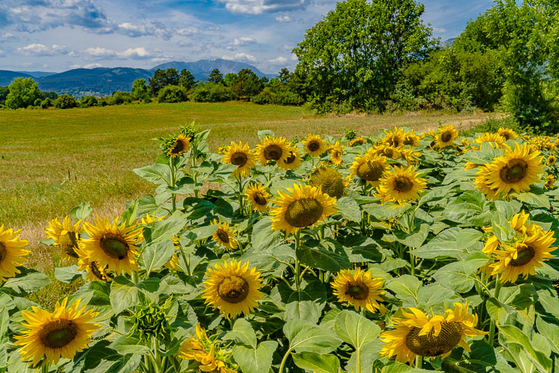 Jetzt blühen wieder die Sonnenblumen, die ich auf den Feldern zwischen Winzendorf, Saubersdorf und St. Egyden bewundern muss. 2 Mountainbike - Fahrten.