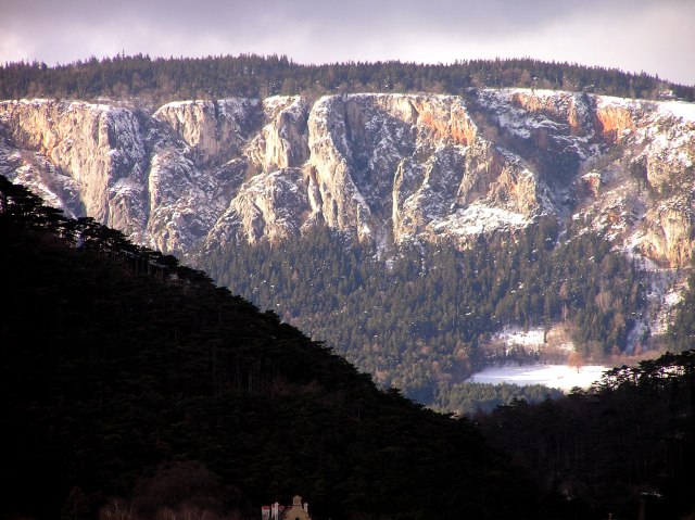 Zoom on Hohe Wand behind Prosset gorge