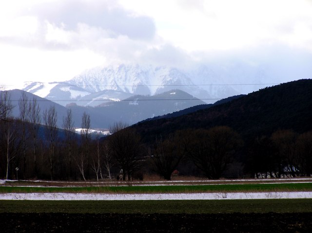 A bit cloudy, but from west coming a sunny spell. Snow covered Hohe Wand is flashing in the sunshine. ...