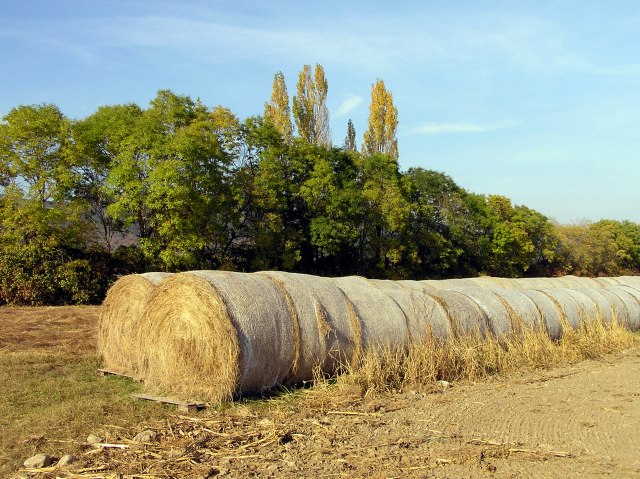 Heuballen lagern hier in Mengen und warten darauf, abgeholt zu werden.