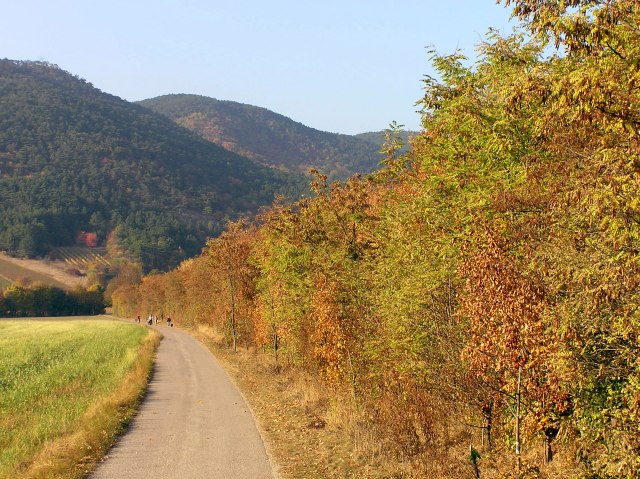 Unsere Freunde aus Kirchberg sind zu Besuch. Da das Wetter so traumhaft schön ist, machen wir einen kleinen Spaziergang von Weikersdorf zur Kastanienallee und weiter bis zum Bahnübergang der Schneebergbahn