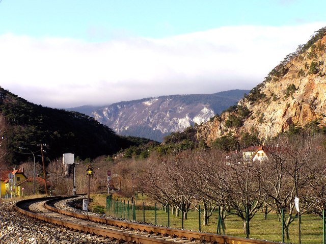 ... an dem die Geleise der Bahnlinie nach Puchberg am Schneeberg vorbeiführen.
