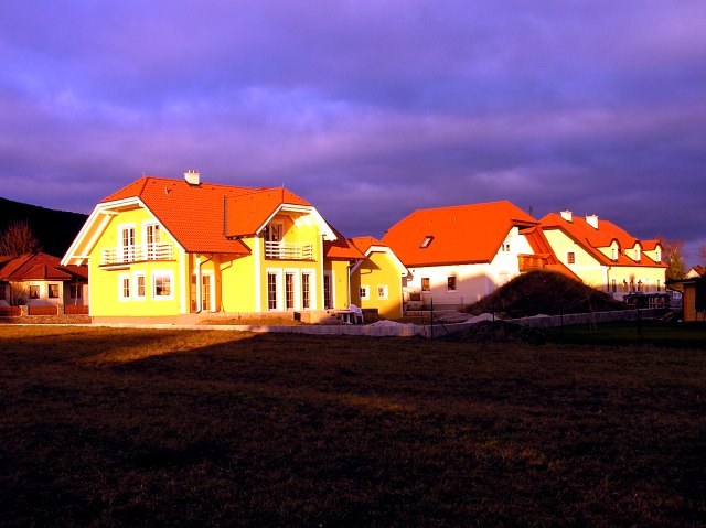 15.45 Uhr - während ich diese Seite erstelle, zaubert das Abendlicht eine hübsche Beleuchtung auf die Nachbarhäuser.
