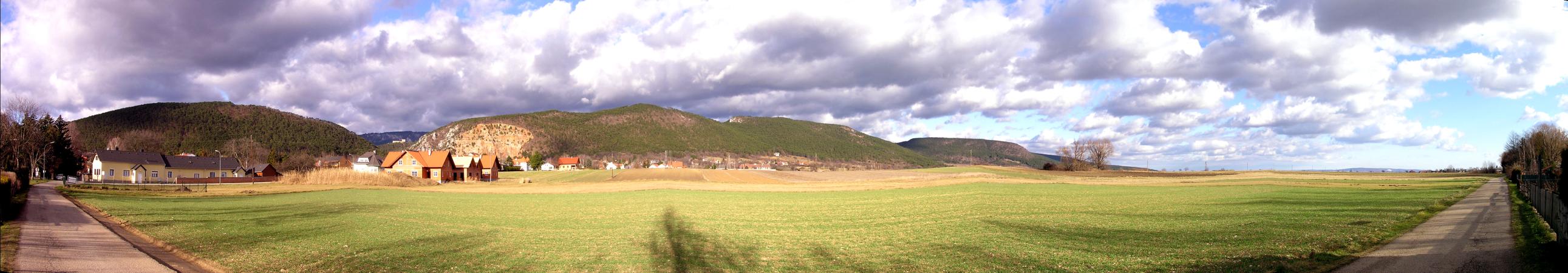 180 Grad - Panoramaaufnahme von Winzendorf, von den Kleingärten am Frauenbach aus gesehen.