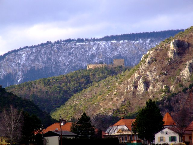 Winzendorf - the quarry in sunshine. Ruin Emmerberg and Hohe Wand behind.