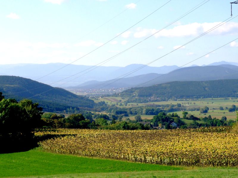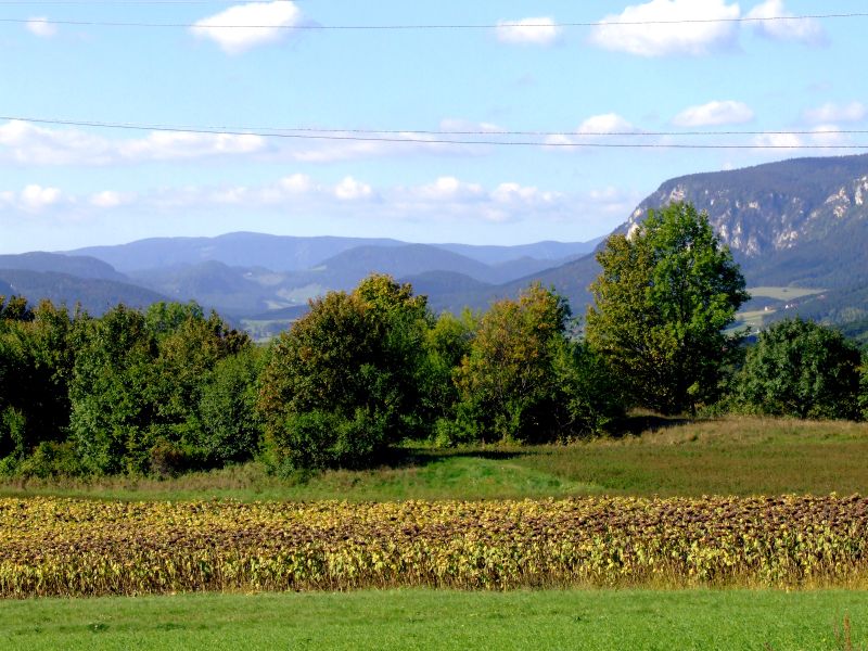 Blick nach Willendorf/Würflach, durch die Senke in den Fischauer Bergen bei Netting.