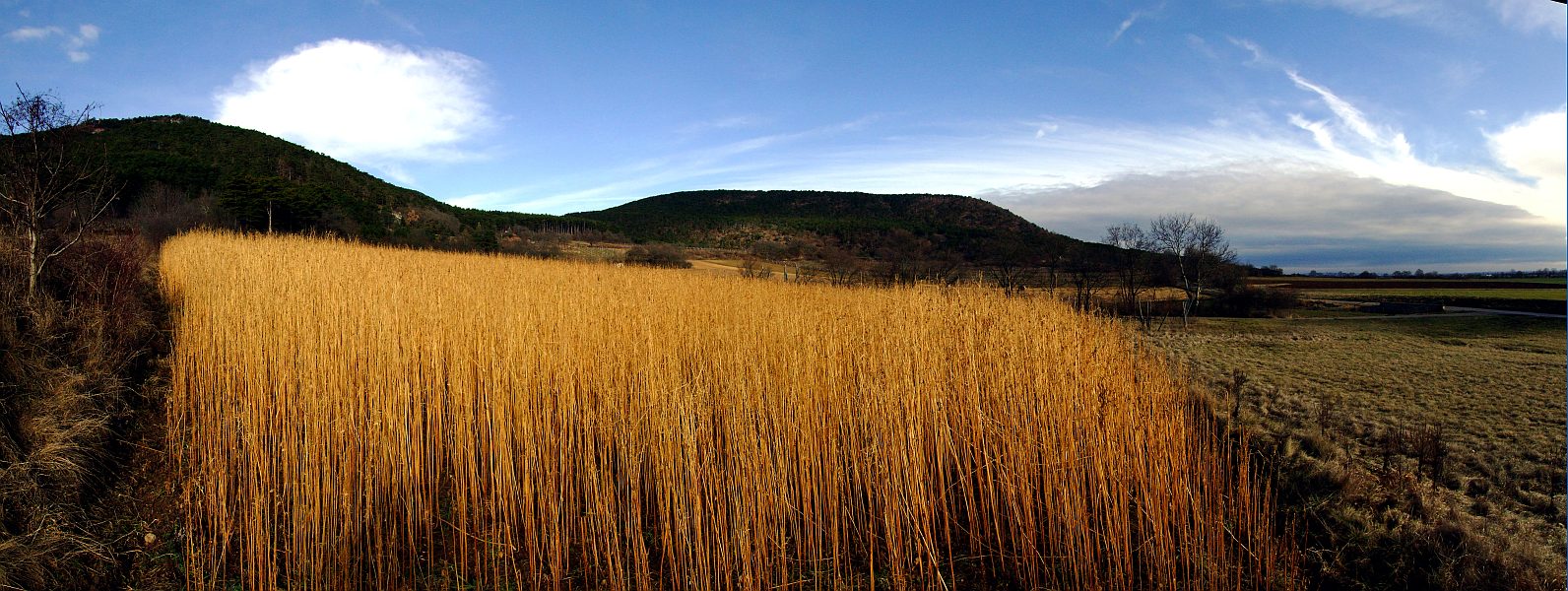 Dürres Rapsfeld mit Blick Richtung Bad Fischau-Brunn. Dieses Panoramabild wurde mit Microsoft ICE aus 6 Hochformat - Bildern zusammengesetzt.