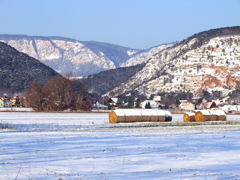 Es ist bitter kalt geworden, mit Dauerfrost über mehrere Tage, und zuletzt hat es - wenn auch wenig - geschneit. Bei -8 Grad und Sonnenschein brechen wir zu einem kleinen Spaziergang Richtung Weikersdorf auf.