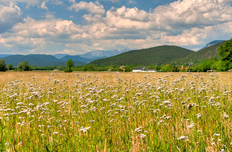 On the grassland in some places lots of Valerian (Valeriana officinalis). Here seen with Bucklige Welt behind...