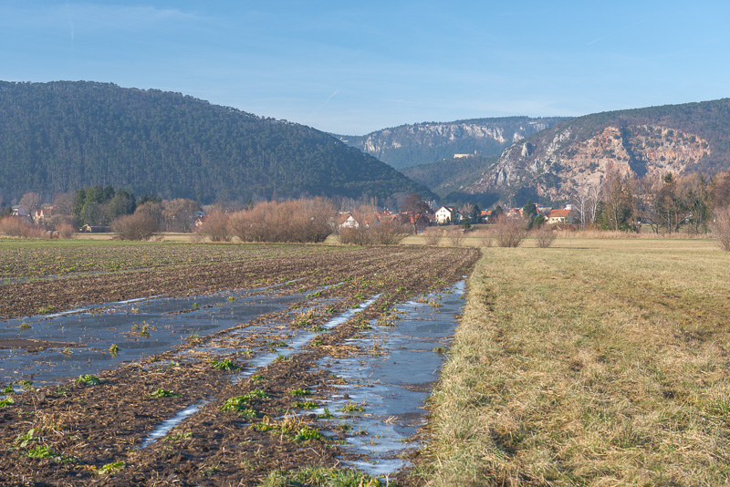 View back - Winzendorf with the Prosset gorge, ruin Emmerberg and Hohe Wand.