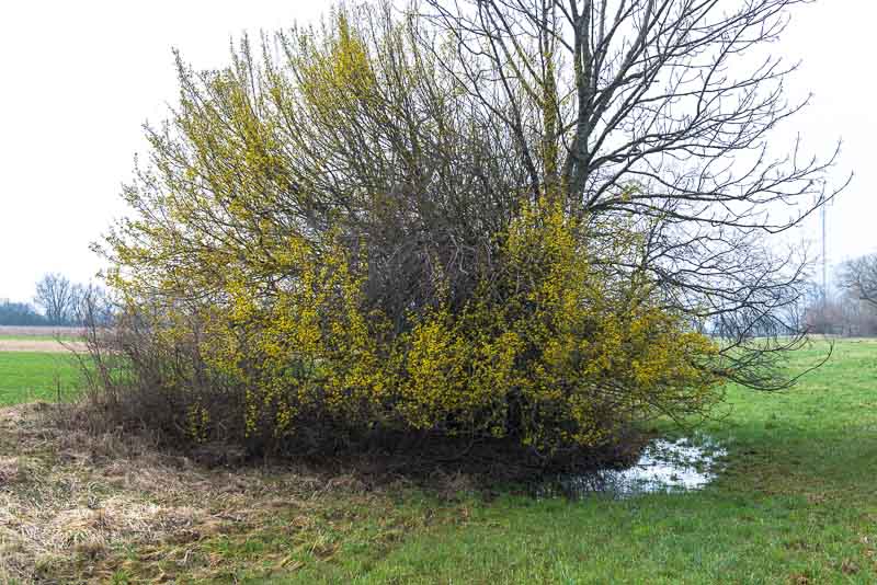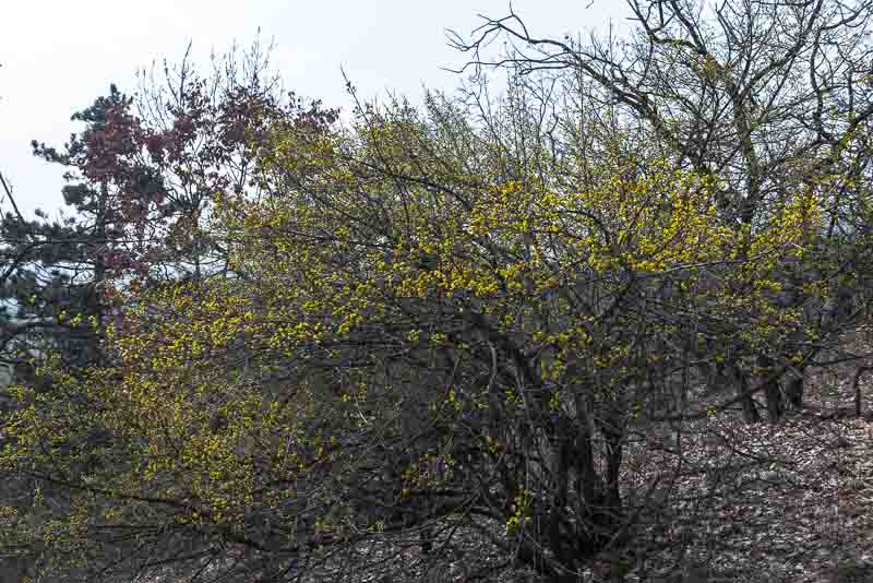 Heute beginnen auch schon die Dirndlsträucher (Cornus mas) mit der Blüte