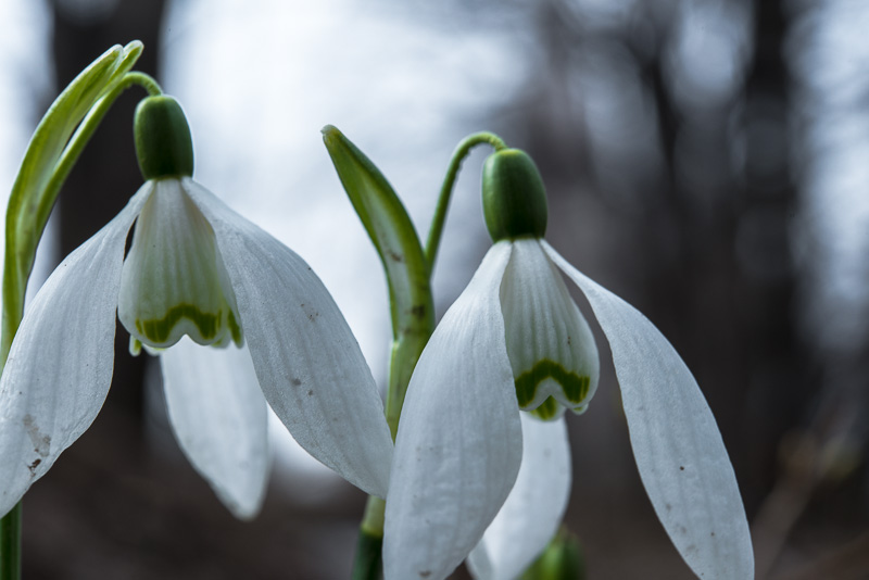 Neben dem Bach einige Schneeglöckchen (Galanthus nivalis).
