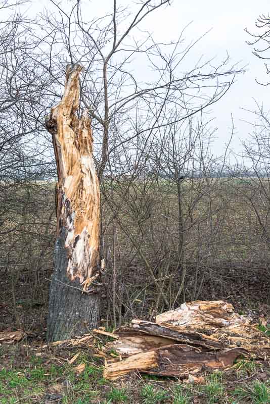 Ein vom Sturm gefällter Kastanienbaum.