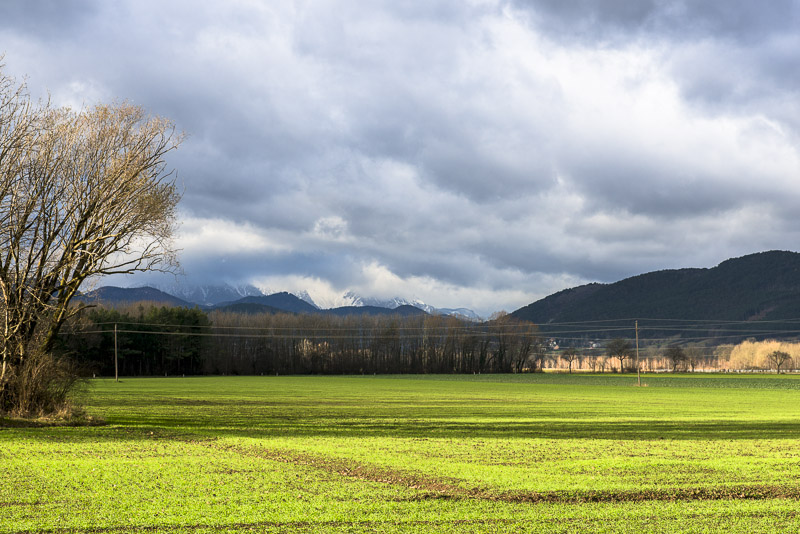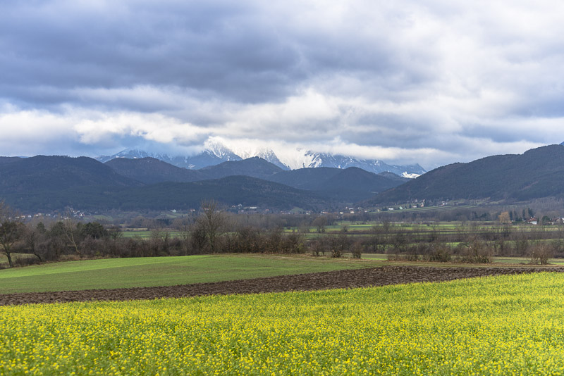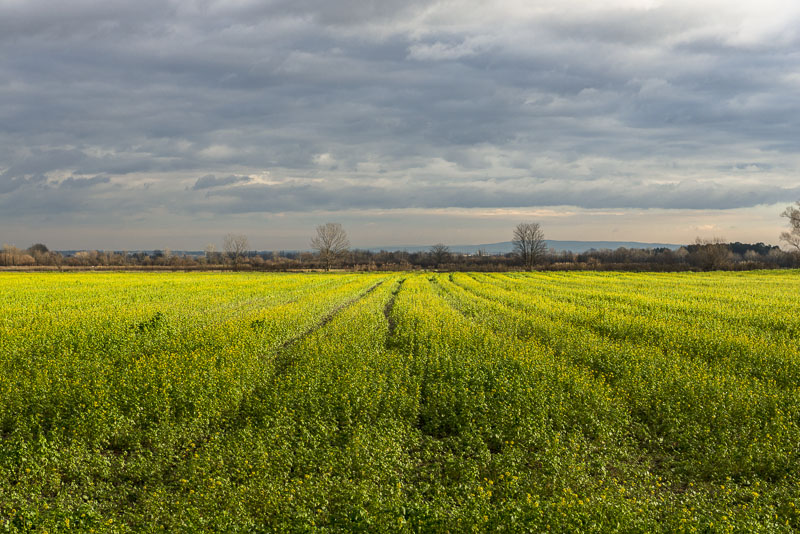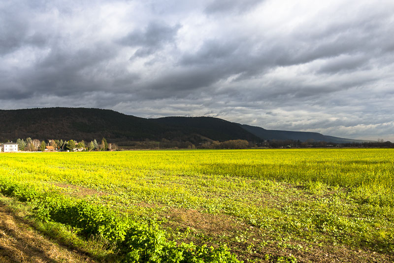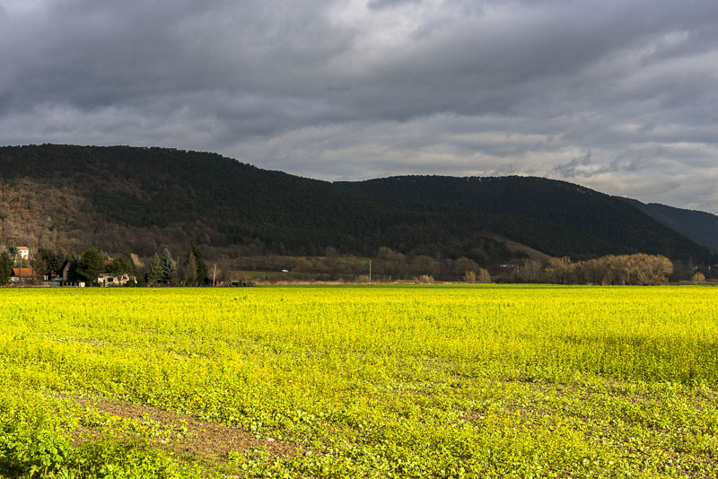 Snow only far up. As there has not been real frost before, green manure - rape plants are still in flower.