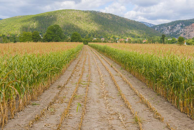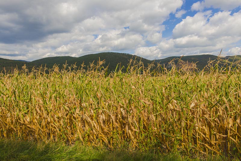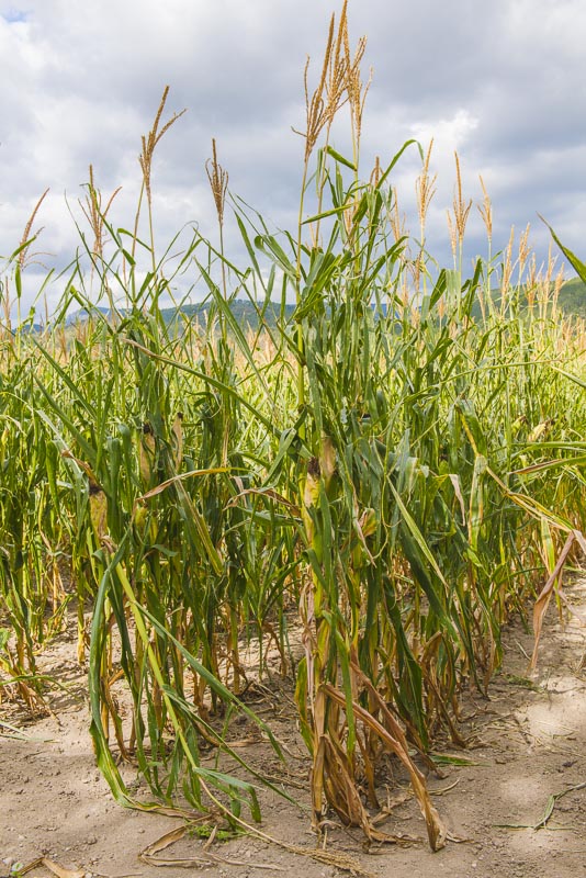Der Mais hat heuer stark unter der großen Hitze und Trockenheit gelitten. Hier wurden einige Reihen als Futtermittel gemäht.