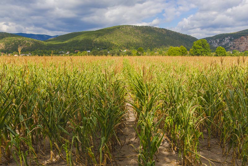 Dürre Blätter beim Mais - Anfang September eher ungewöhnlich.
