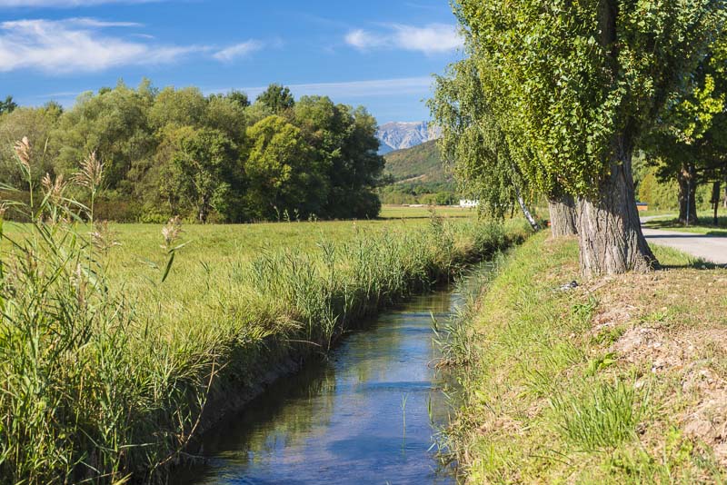 Den Rückweg von Weikersdorf gehe ich über die Felder Richtung Saubersdorf. Diese Abzweigung des Frauenbaches enthält kein Wasser mehr.