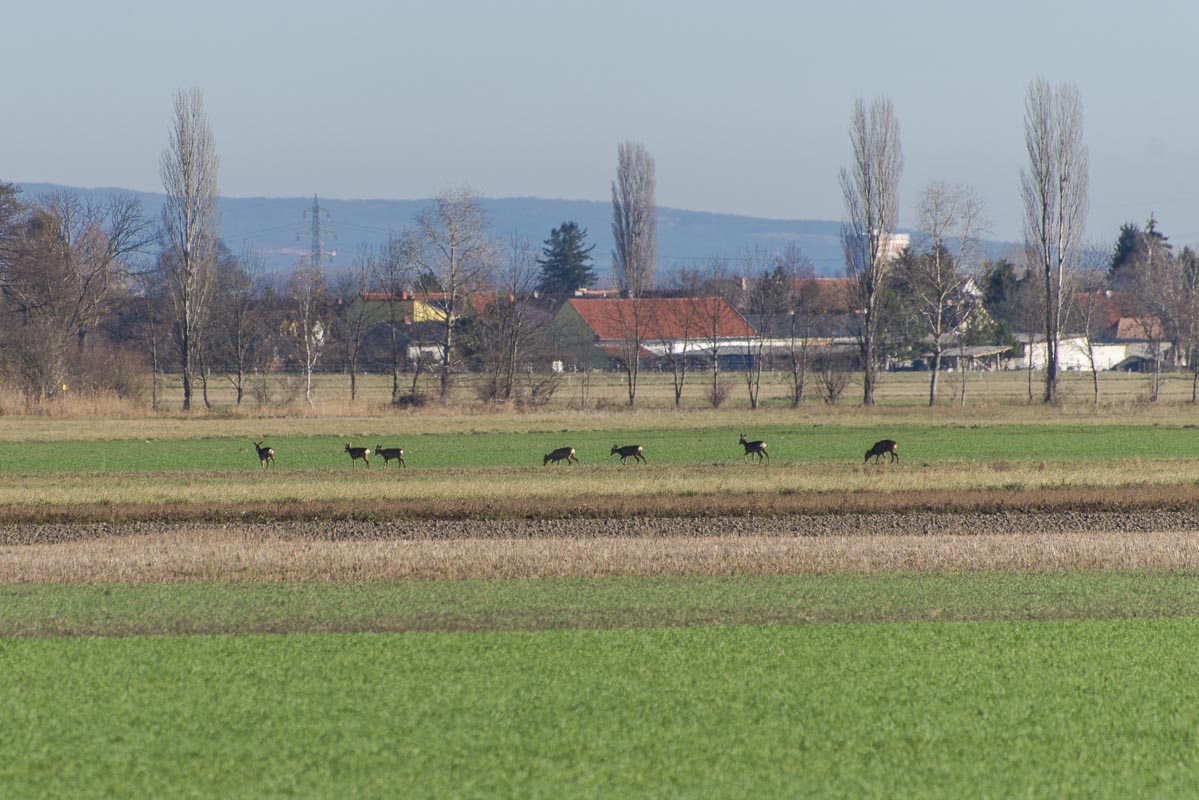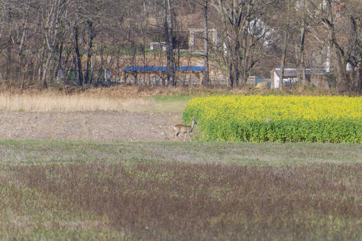 A flock of row deer flees - and re-gathers in the distance (not far enough for my camera though).