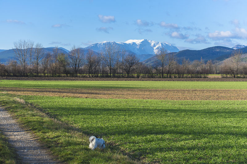After a misty bank holiday and a rainy Wednesday, it is sunny today. I start for a morning walk with Lucy, to the fields.