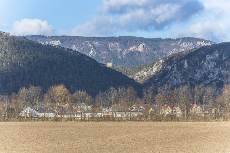 Winzendorf, ruin Emmerberg with Hohe Wand in behind.