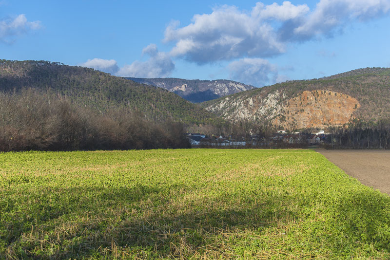 Winzendorf and the big quarry Far right is Engelsberg with the rocks, where I was on Monday.