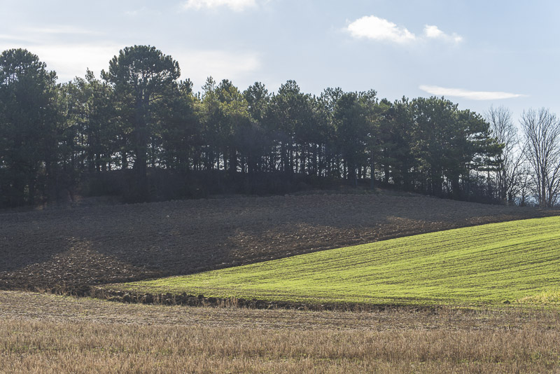 A freshly ploughed field - the sharp plough share has left behind many plain surfaces.