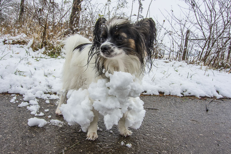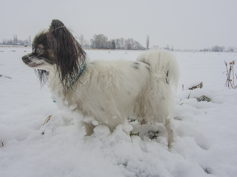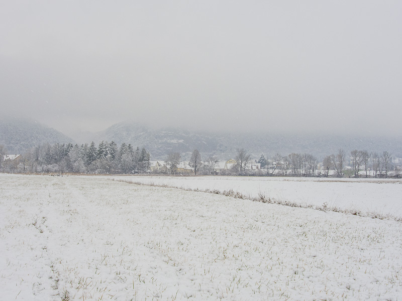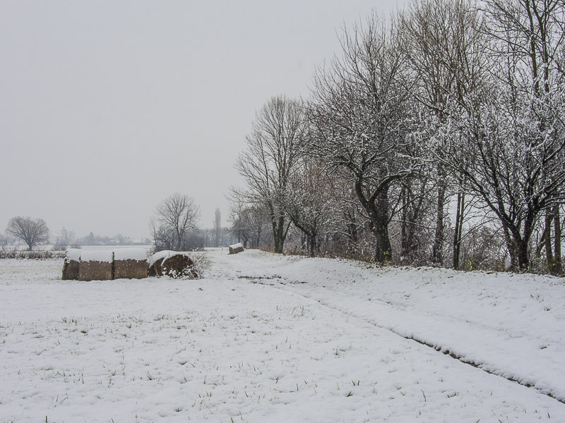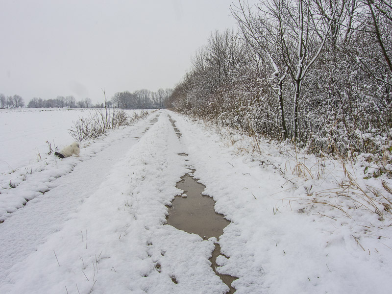 Looking out of the window in the morning - all white. SO, I take Lucy for a late morning walk to the fields near Winzendorf.
