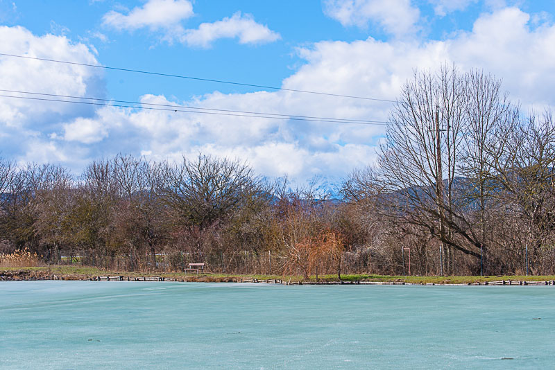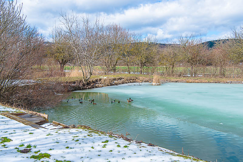 Bei der Eisdecke am Fischteich dauert es aber noch ein wenig.