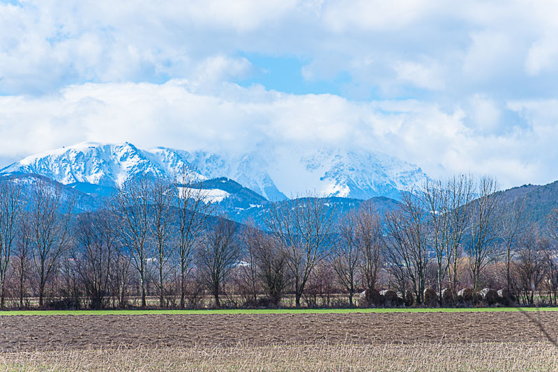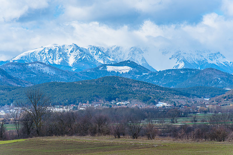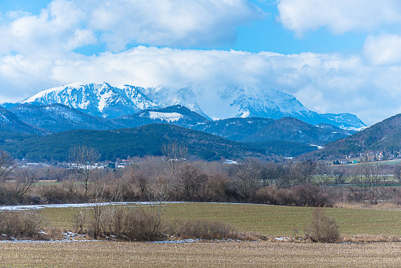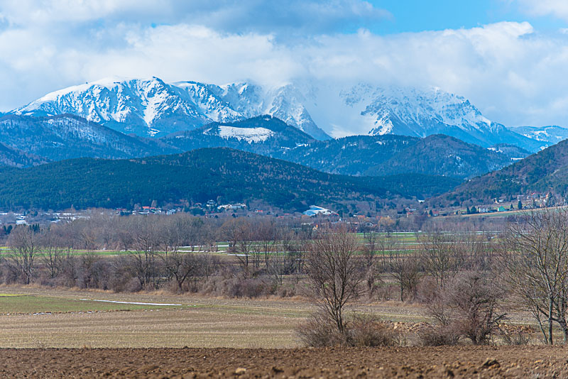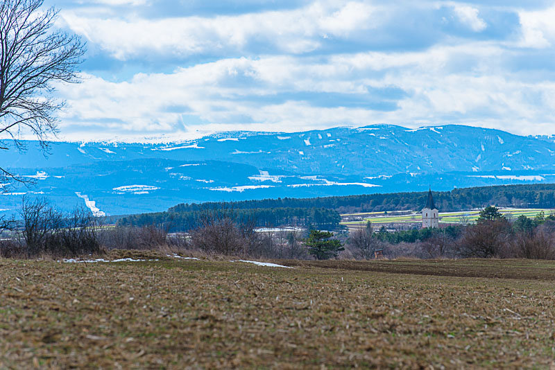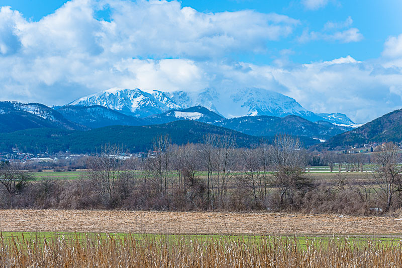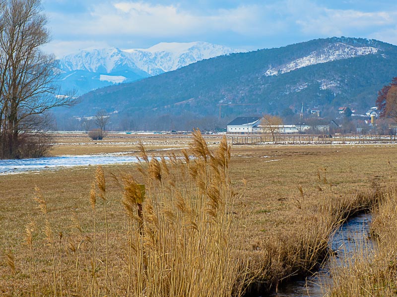8.März: Heute hat es fast 10 Grad, und es geht der Wind. Bei wechselnder Bewölkung ist der Schneeberggipfel in Wolken gehüllt.
