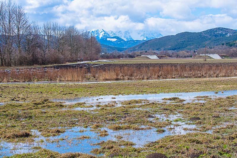 Das Schmelzwasser kann im gefrorenen Boden nicht einsickern, daher die großen Lacken.