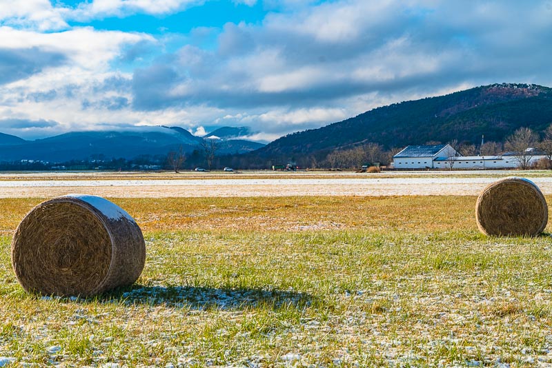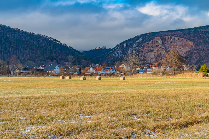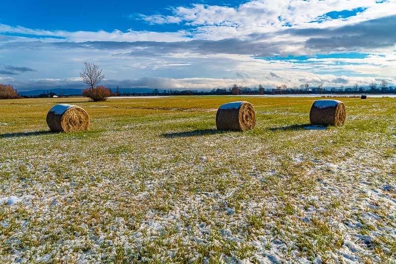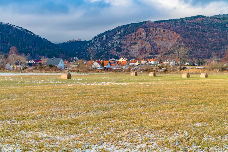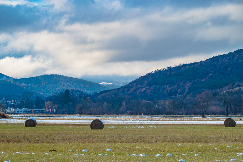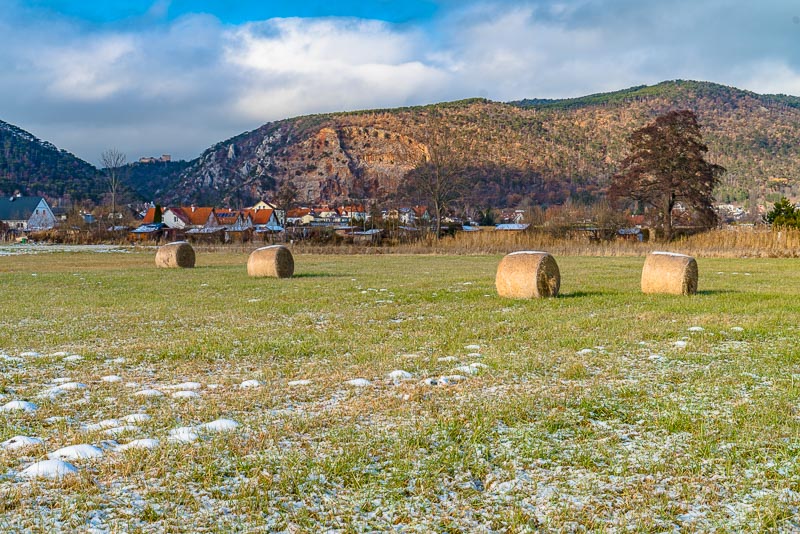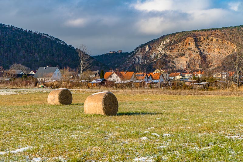 Heuballen mit dem Blick auf Winzendorf und zur Ruine Emmerberg, die momentan im Schatten einer Wolke ist. Kann sich das vielleicht noch ändern?