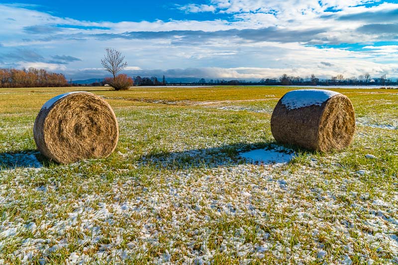 Heuballen - der Schneeberg ist natürlich noch in Wolken.