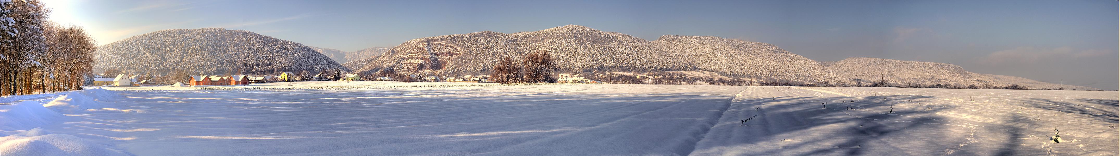 Panorama von Winzendorf mit den Fischauer Bergen.