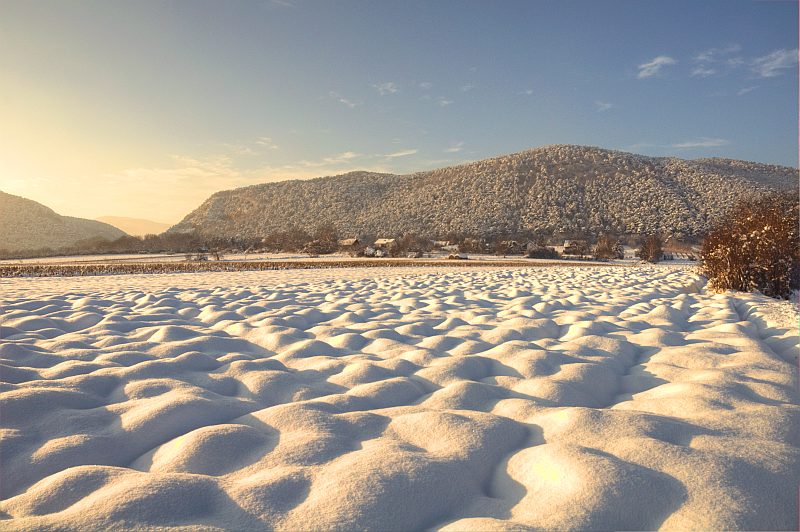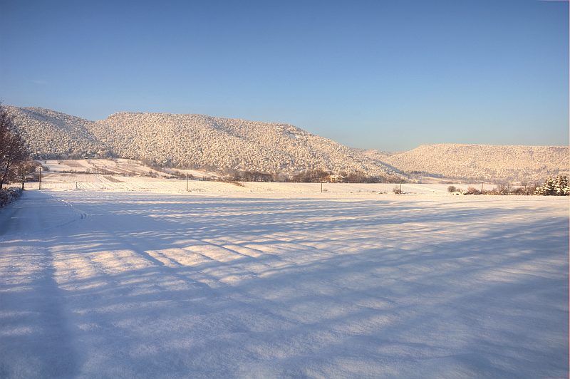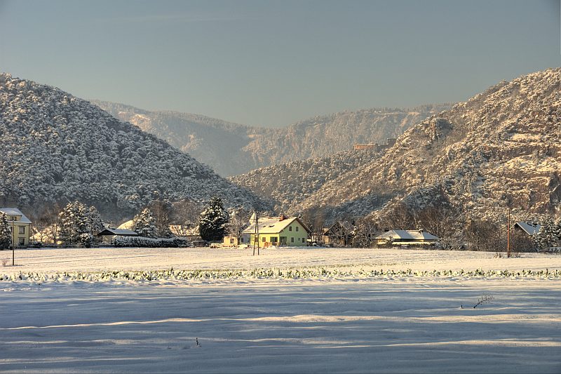 A sunny, bright, but rather cold winter day. After Lunch, I start for a walk in the snow, first heading for Weikersdorf.