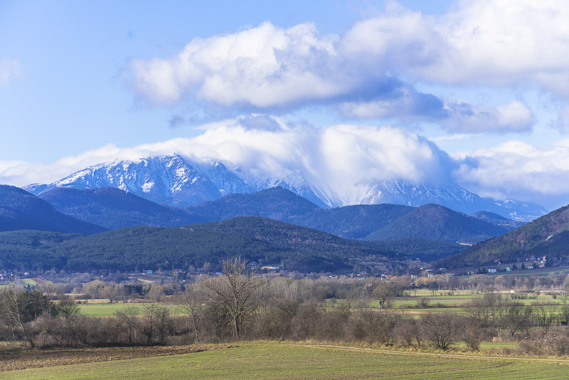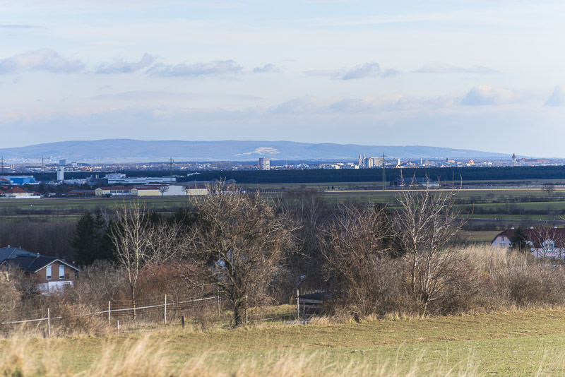 Good view to Wiener Neustadt from the hill near Saubersdorf, with the Leitha-mountains in behind.